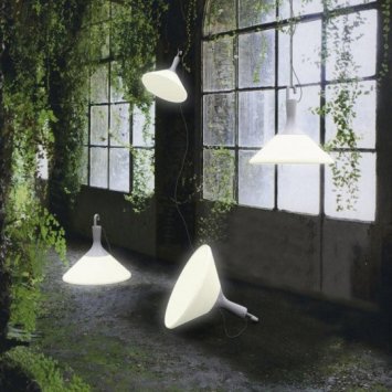 – Driade Zelight Outdoor, la lampada dal look divertente e ludica si ispira alle lampade portatili utilizzate nei cantieri, nei garage. Si appende e si appoggia ovunque grazie al suo lungo cavo nero, potete appenderla al muro o al soffitto o anche appoggiarla su qualsiasi superficie. Leggera, Zelight vi servirà ovunque: dalla terrazza al giardino passando per il salone o la cucina.