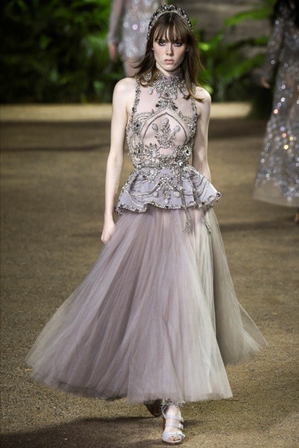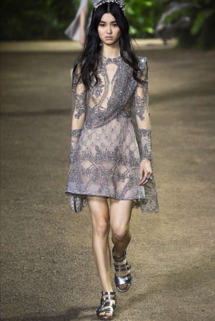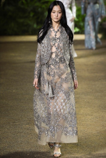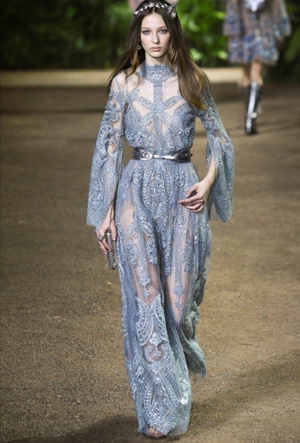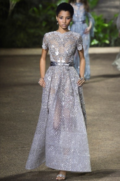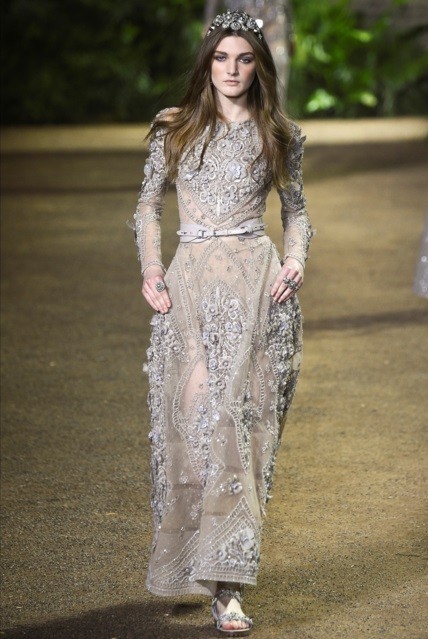 È impossibile non rimanere incantati dagli abiti di Elie Saab presentati ieri a Parigi, una sfilata degna di una regina, dove gli abiti della collezione P/E 2016, ondeggiavano morbidi e scintillanti sulla passerella di terra battuta in mezzo alla giungla allestita dallo stilista libanese nei sotterranei del Thêatre national de Chaillot.