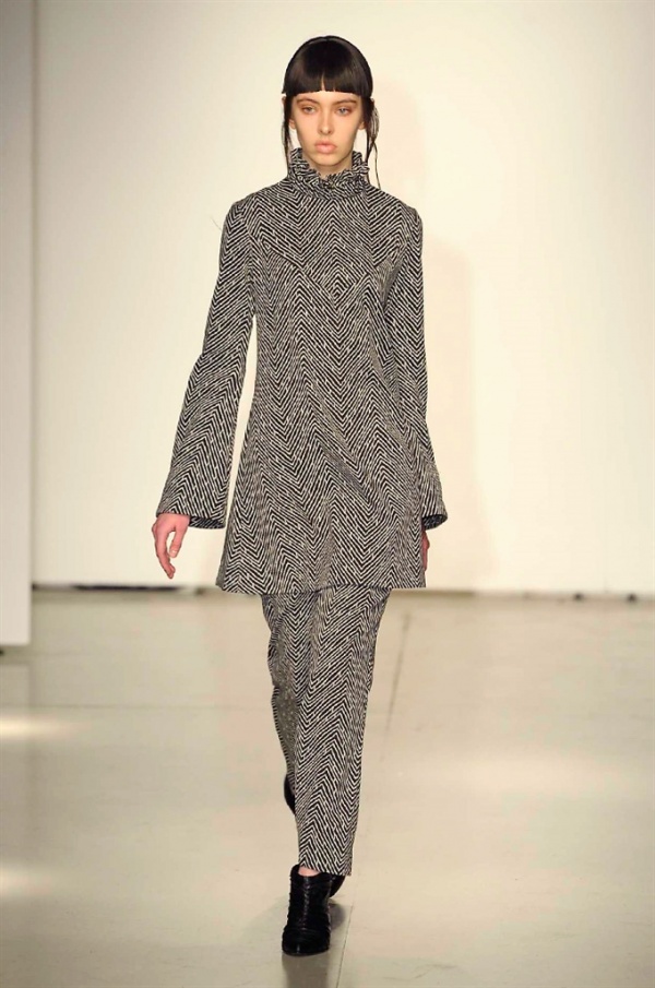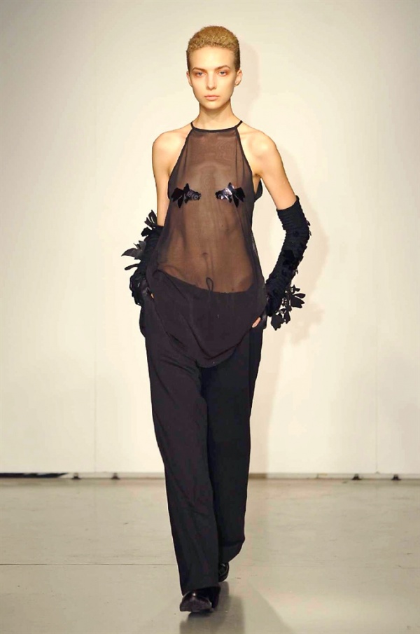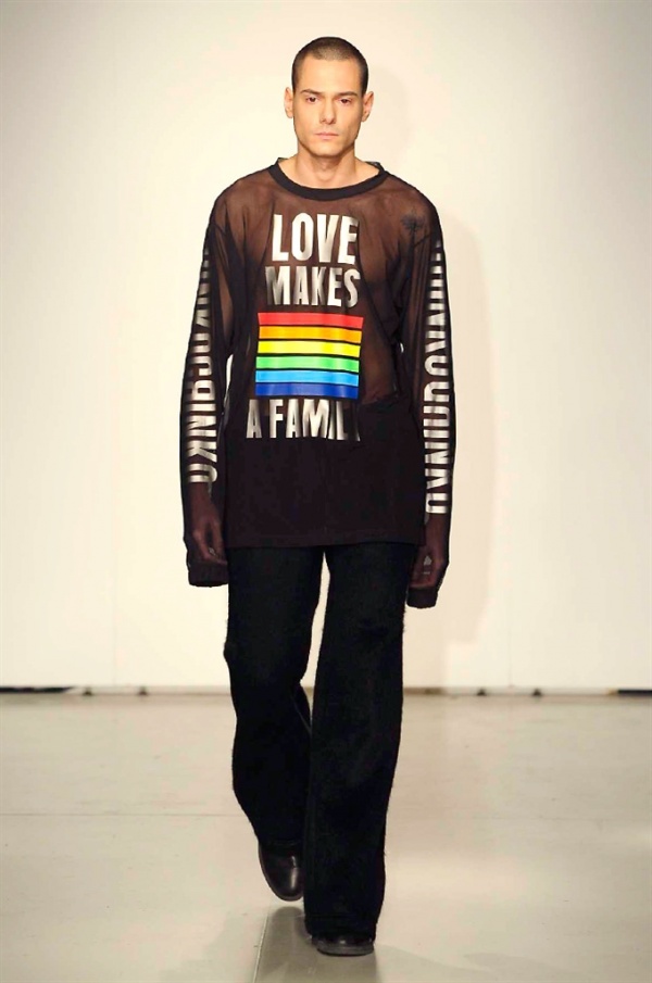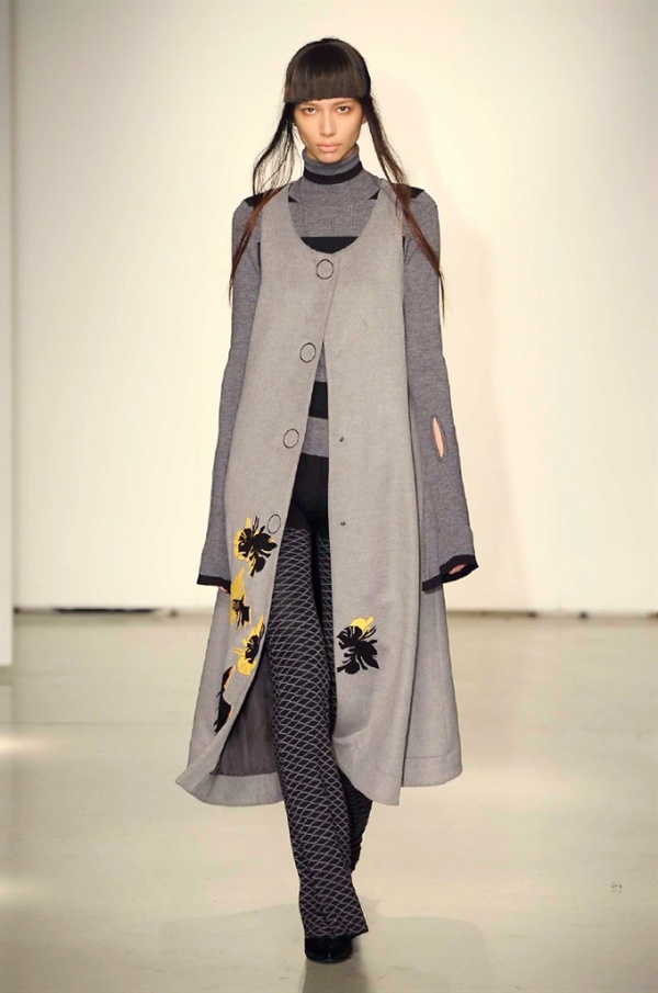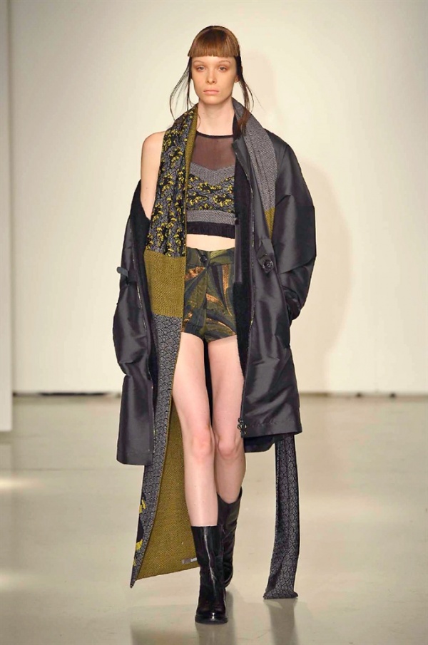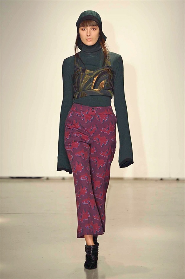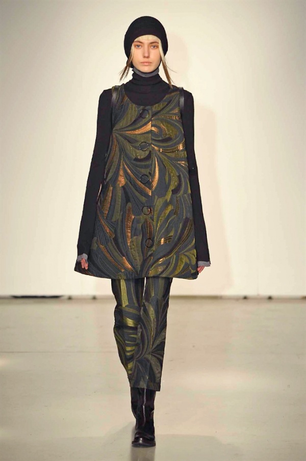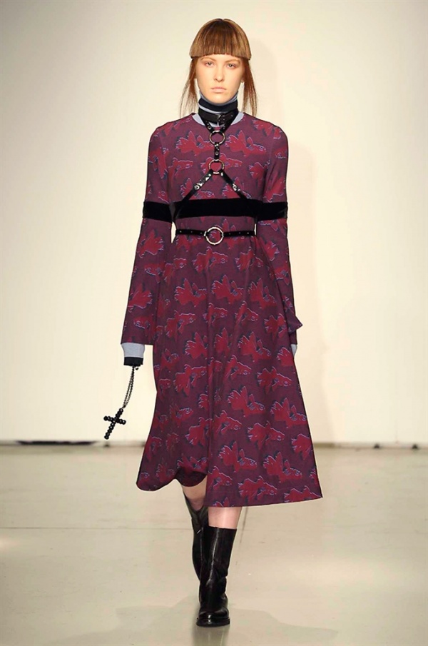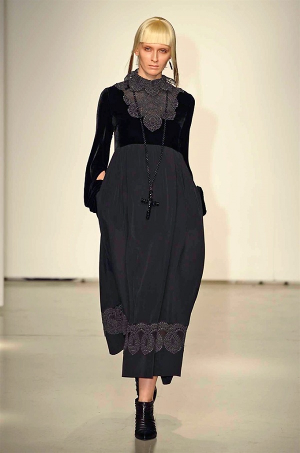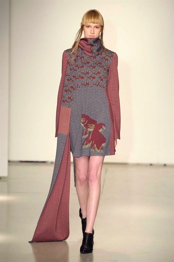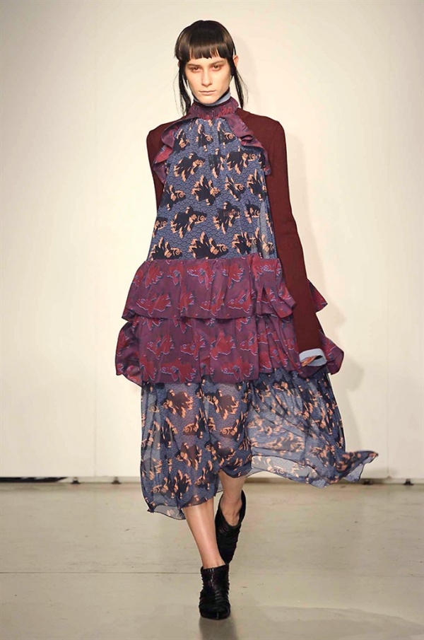 La prima collezione ad aprile le danze della settimana della moda è stata quella dello stilista russo Sergei Grinko che ha presentato la sua Belief+Doubt=Sanity, dove la parola chiave per svelarne il concept è “sperimentazione”, in passerella hanno sfilato uomini e donne con abiti che richiamano diversi stili e epoche, dal barocco al punk, con contaminazioni orientali e stampe del Goldenfish come simbolo, restano punti fermi i riferimenti vittoriani. Indumento icona della collezione è il bomber oversize, lavorato con tessuti broccati sui toni del blu.