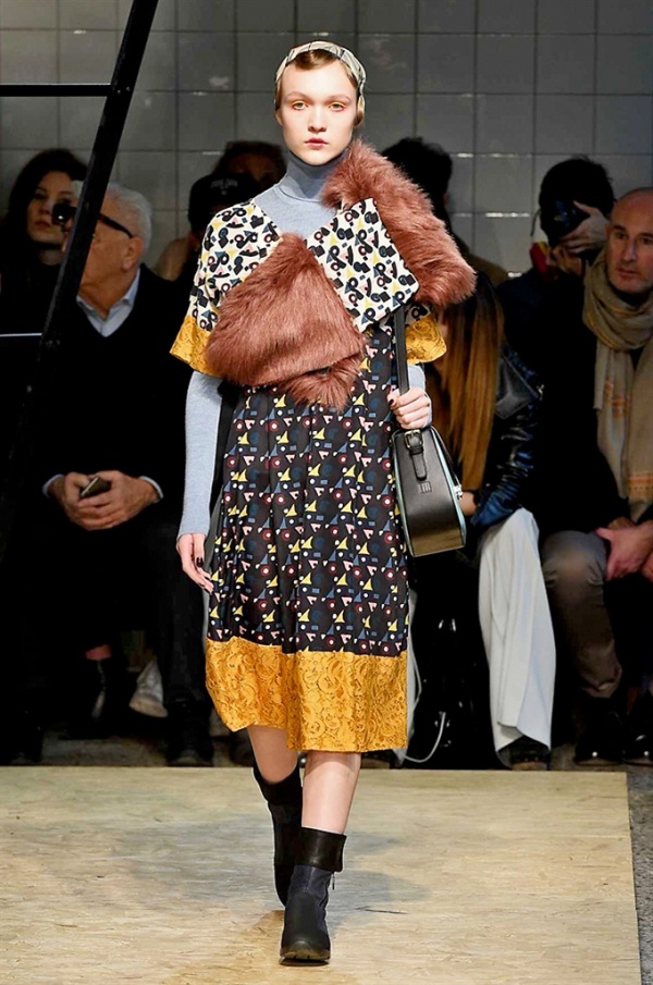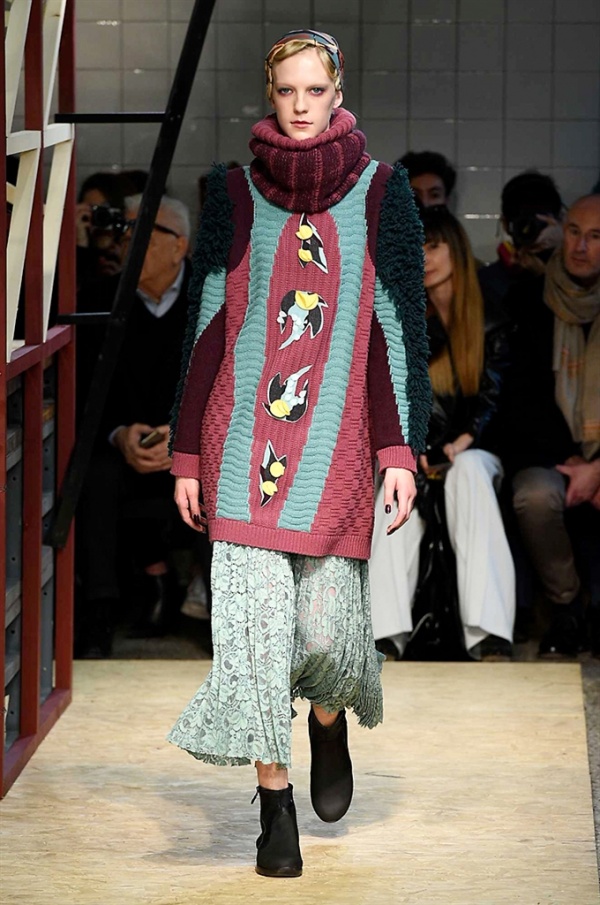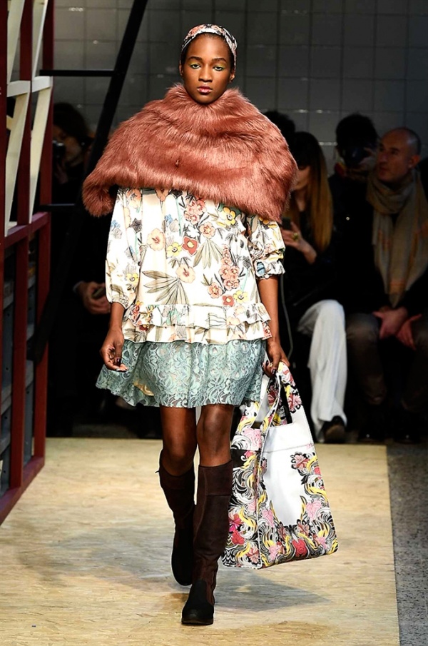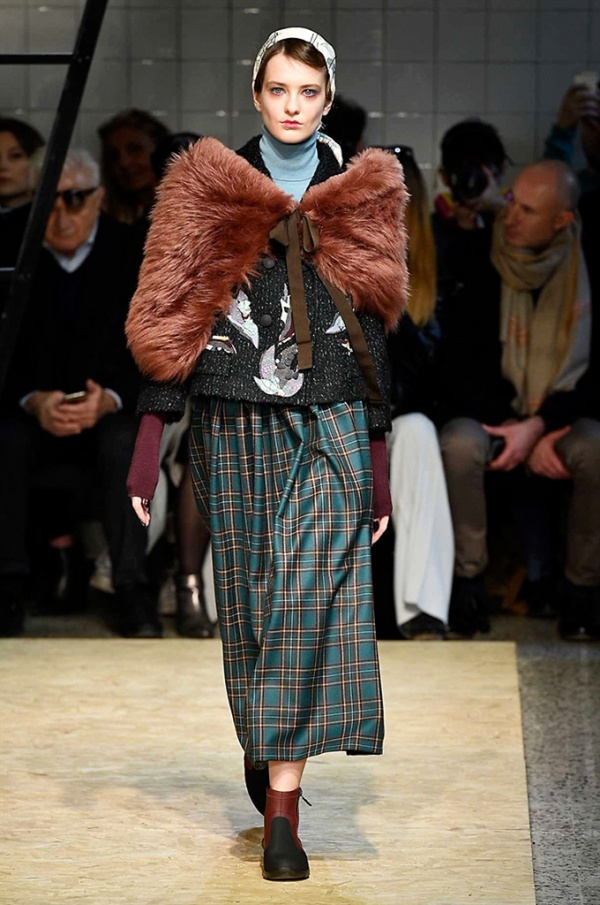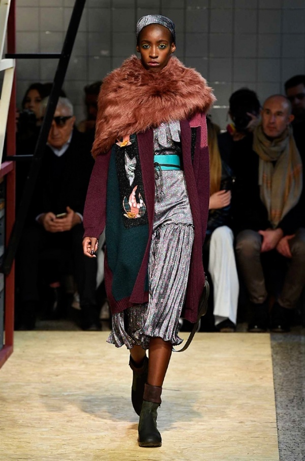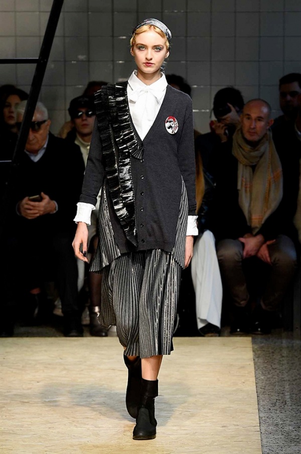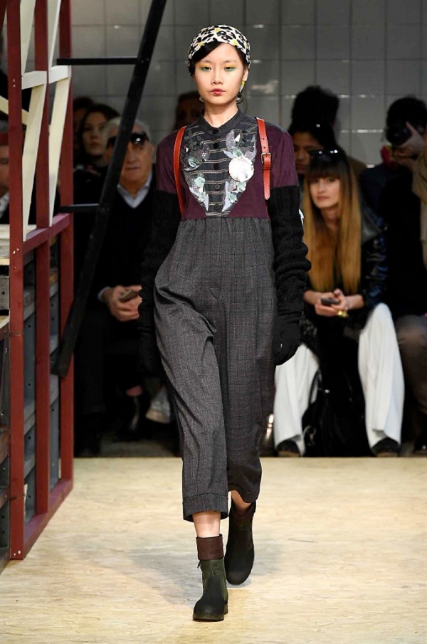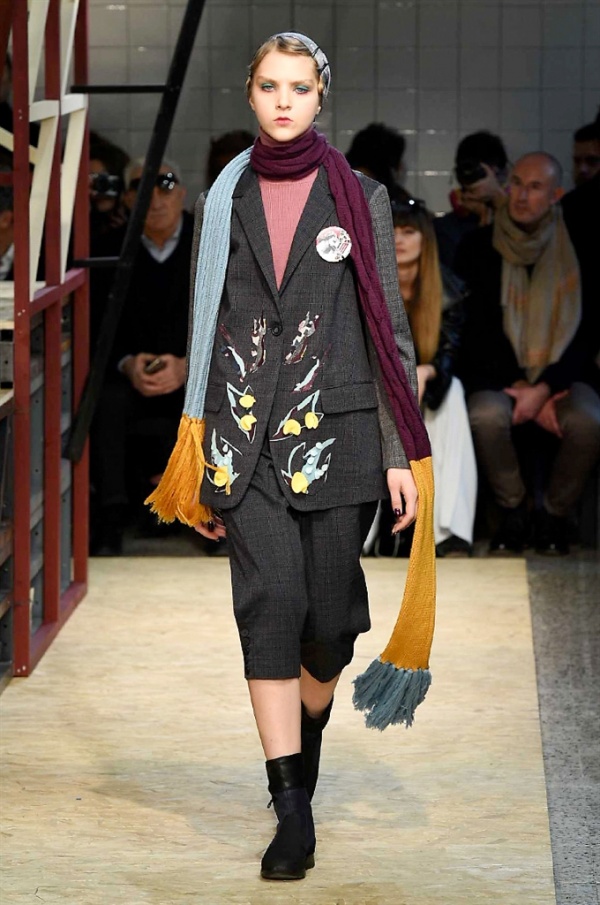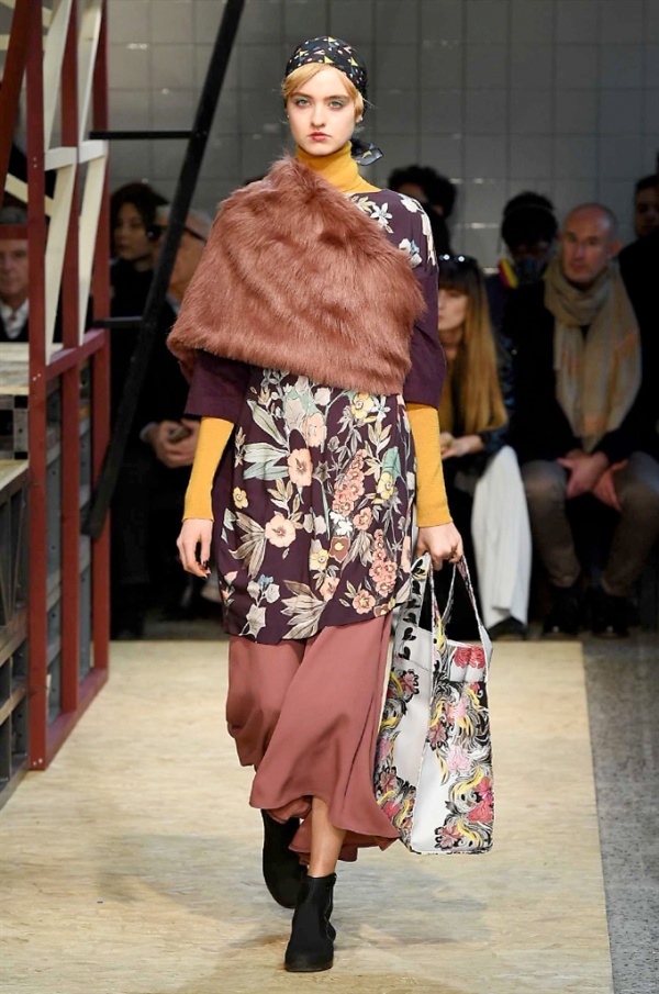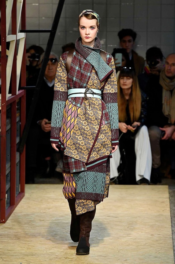 Lo stilista sardo Marras ha presentato la sua nuova collezione I’m Isola Marras A/I 2016-17 ispirata al costruttivismo russo, grandi stole in pelliccia sintetica e foulard in testa fermati da forcine. In contrasto con la rigidità delle stampe ci sono fiori, righe, jacquard e pizzi che ammorbidiscono i capi.