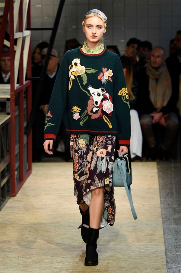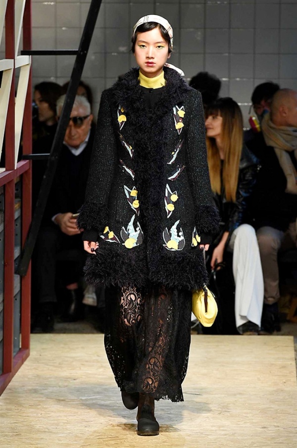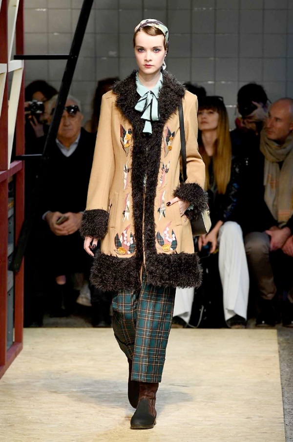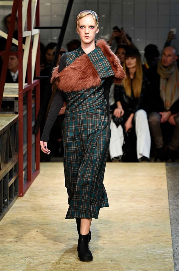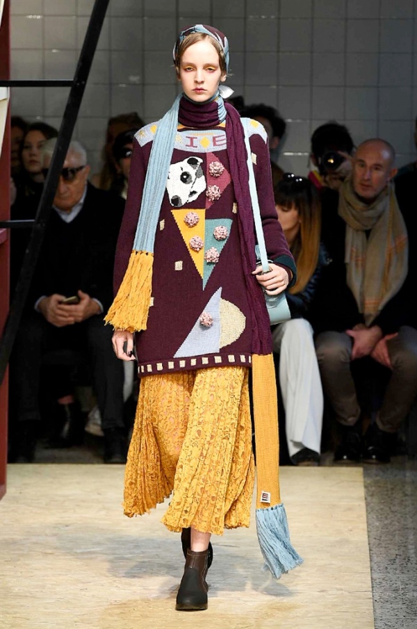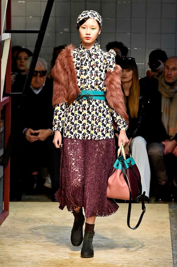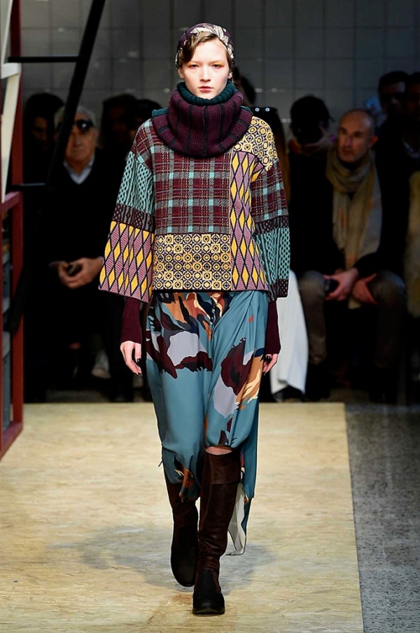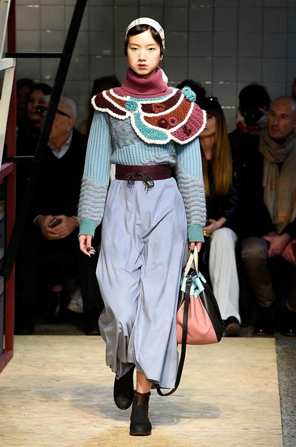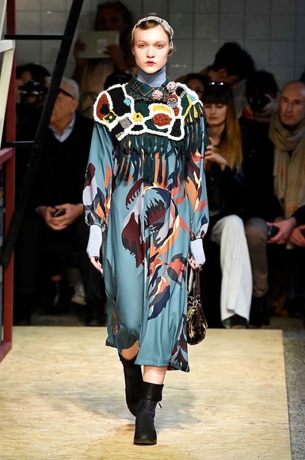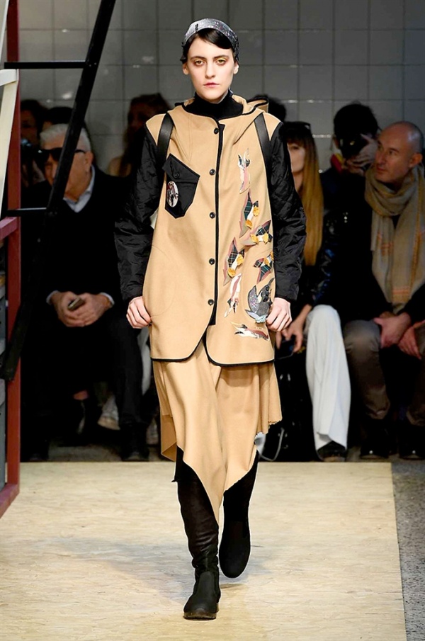 Lo stilista sardo Marras ha presentato la sua nuova collezione I’m Isola Marras A/I 2016-17 ispirata al costruttivismo russo, grandi stole in pelliccia sintetica e foulard in testa fermati da forcine. In contrasto con la rigidità delle stampe ci sono fiori, righe, jacquard e pizzi che ammorbidiscono i capi.