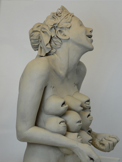 Nelle opere più recenti invece si legge in sottofondo una nota di dolore, di violenza, di gioia e tranquillità, come per la scultura “My Artemis”, che sarà esposta alla Biennale di Israele a Tel-Aviv, quest’opera rappresenta una maniacale dea ghignante e gioiosa dal cui petto crescono seni con bocche e lingue affamate; rappresenta una Dea Madre mascolina che non si lascia mai andare, ma indipendentemente da questo i suoi seni non sono più in grado di nutrire, anzi, sono diventati quelli che hanno bisogno di essere nutriti.