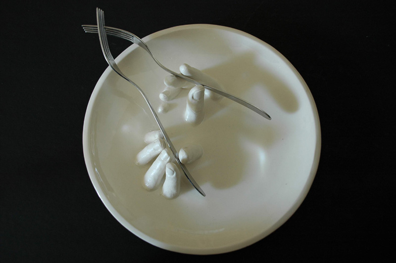 Le opere dell’artista israeliana Ronit Baranga possono sembrare spaventose e ripugnanti a un primo approccio, ma non è assolutamente ciò che vogliono esprimere, con queste sculture Ronit da vita agli oggetti di uso quotidiano come piatti, tazze da té e piattini, donandogli la possibilità di esprimere delle emozioni. Gli oggetti comuni che diamo per scontati, in questo modo, aggiungendogli particolari umani come bocca e dita, hanno la possibilità di essere collocati in modo differente nel mondo rispetto al loro destino, così si può decidere se utilizzarli per il loro primo scopo o se fargli prendere una diversa strada nella vita.