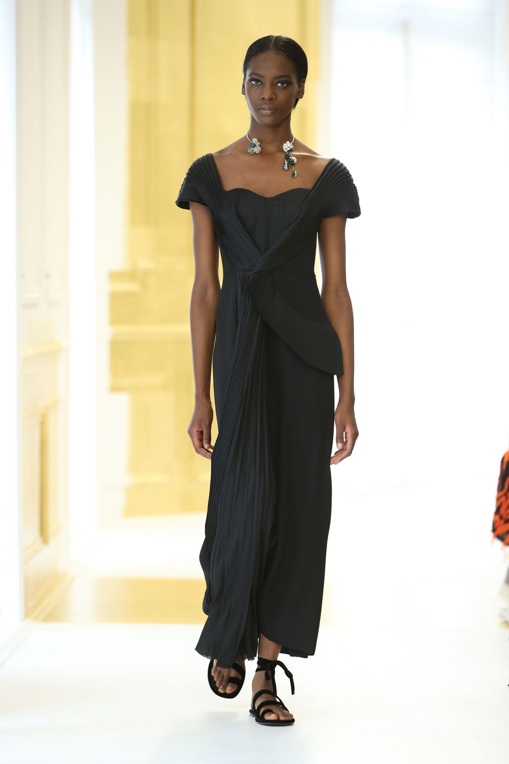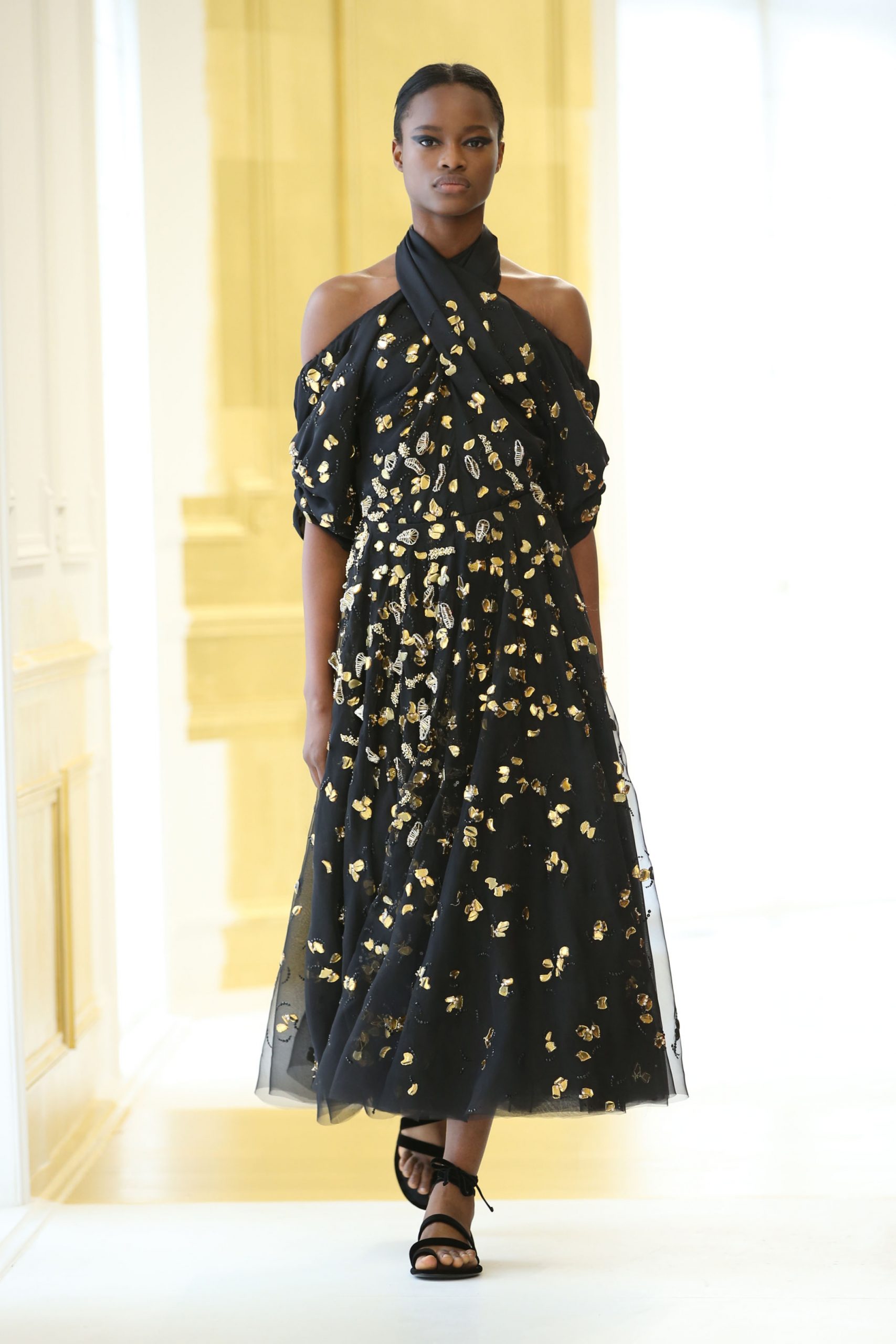 Unico colore e solo ornamento, un oro dal ricamo scultoreo, ispirato al lavoro di César o di Claude Lalanne, riferimento anche all’Art brut. Jean Cocteau diceva di Dior: “Un genio sottile dei nostri tempi il cui nome magico racchiude ‘Dio’ e ‘oro'”.