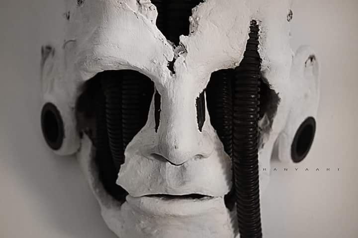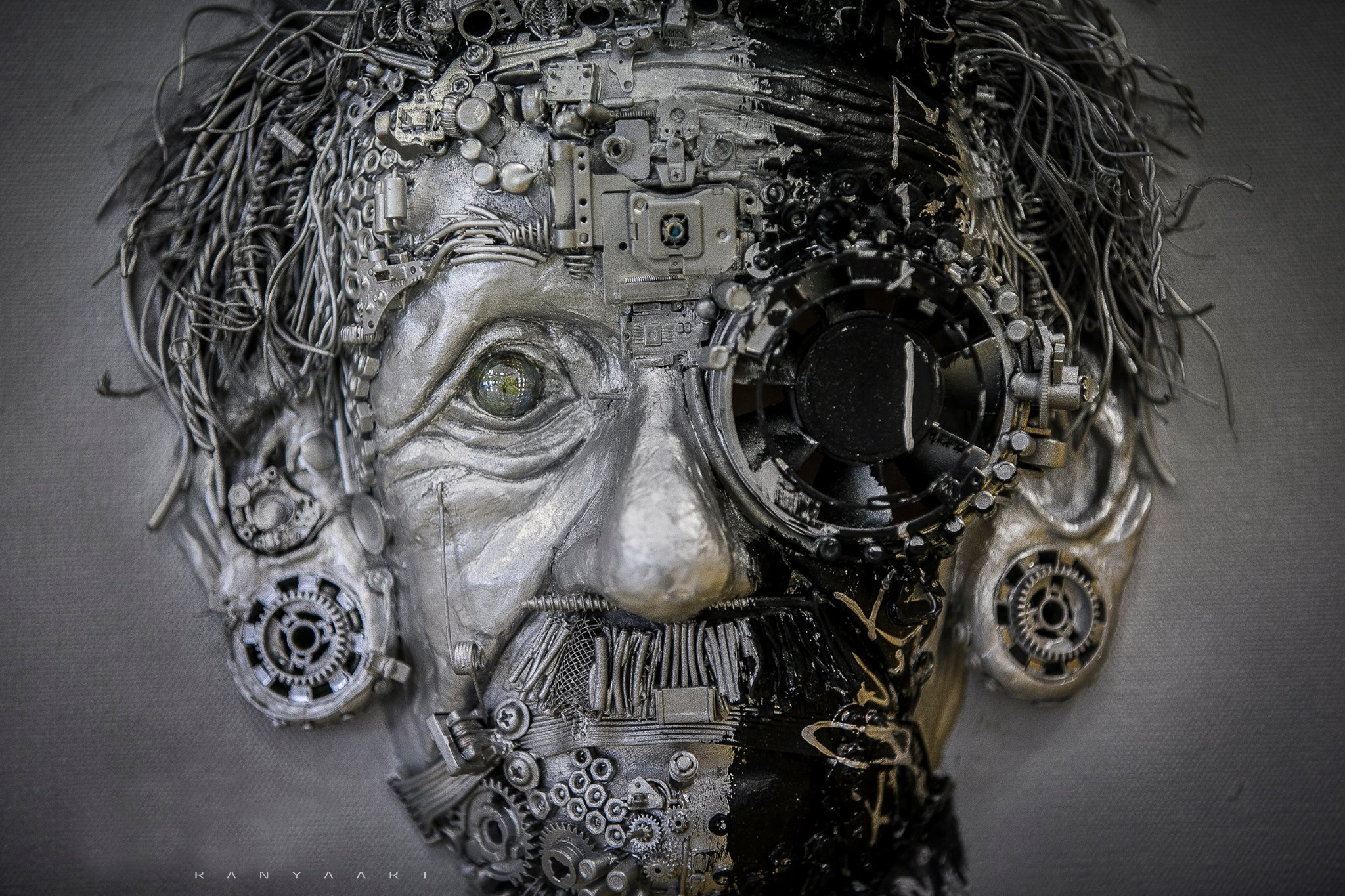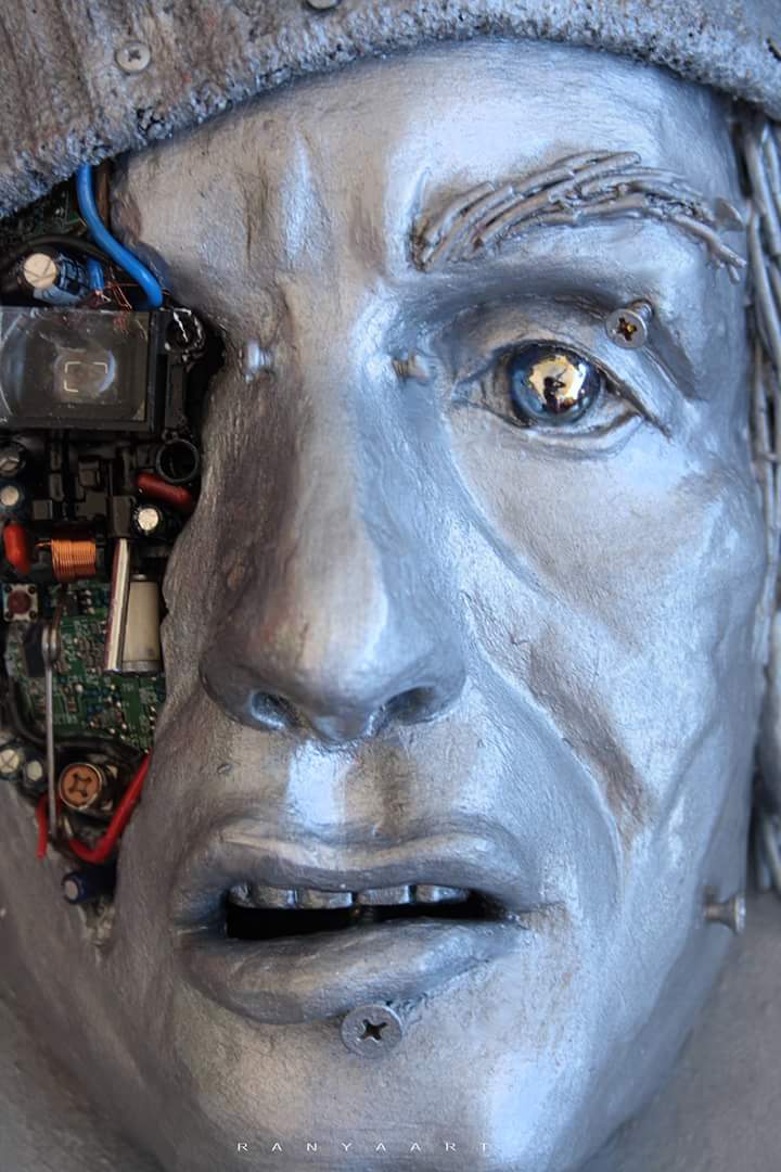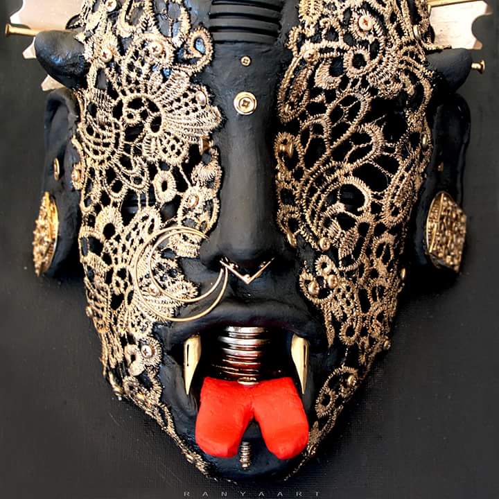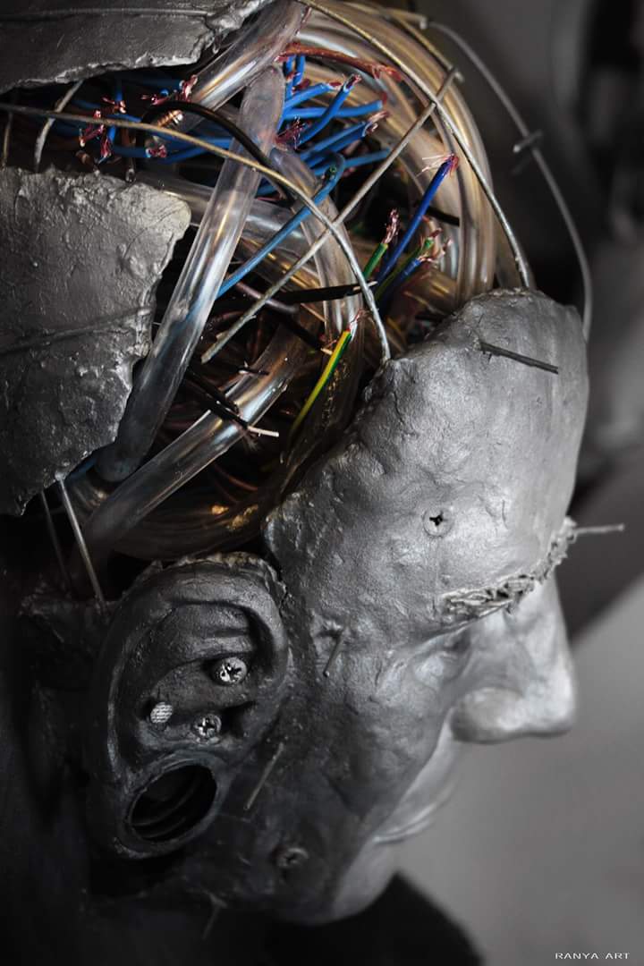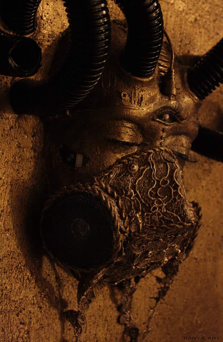 Guardando le opere di Ranya si rimane davvero colpiti dalla forza espressiva dei volti e catturati dalla curiosità di scoprirne ogni minimo dettaglio come ingranaggi, merletti, cavi d’acciaio e webcam che mutano completamente la loro natura per dar forma al significato dell’opera che non è mai casuale.