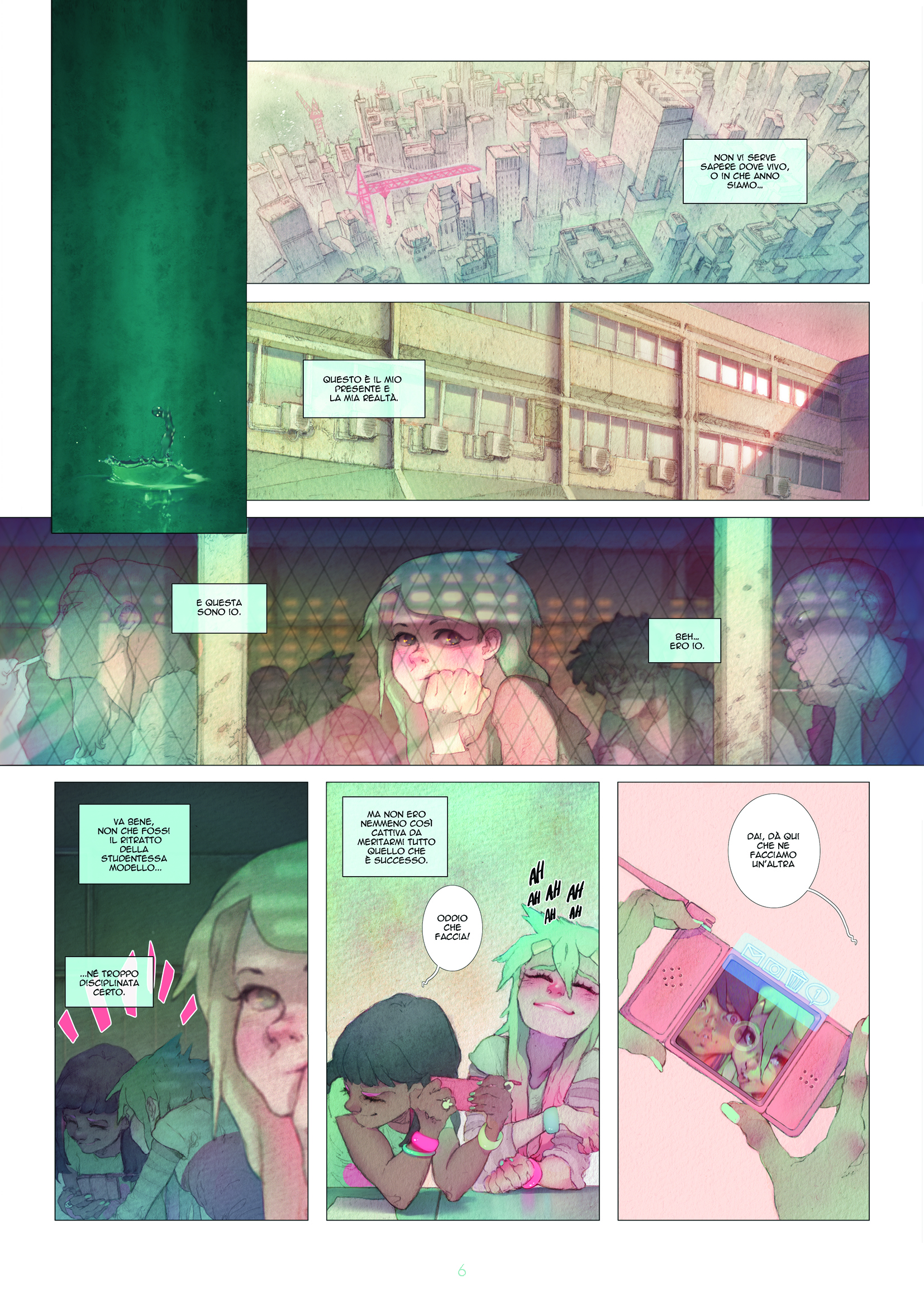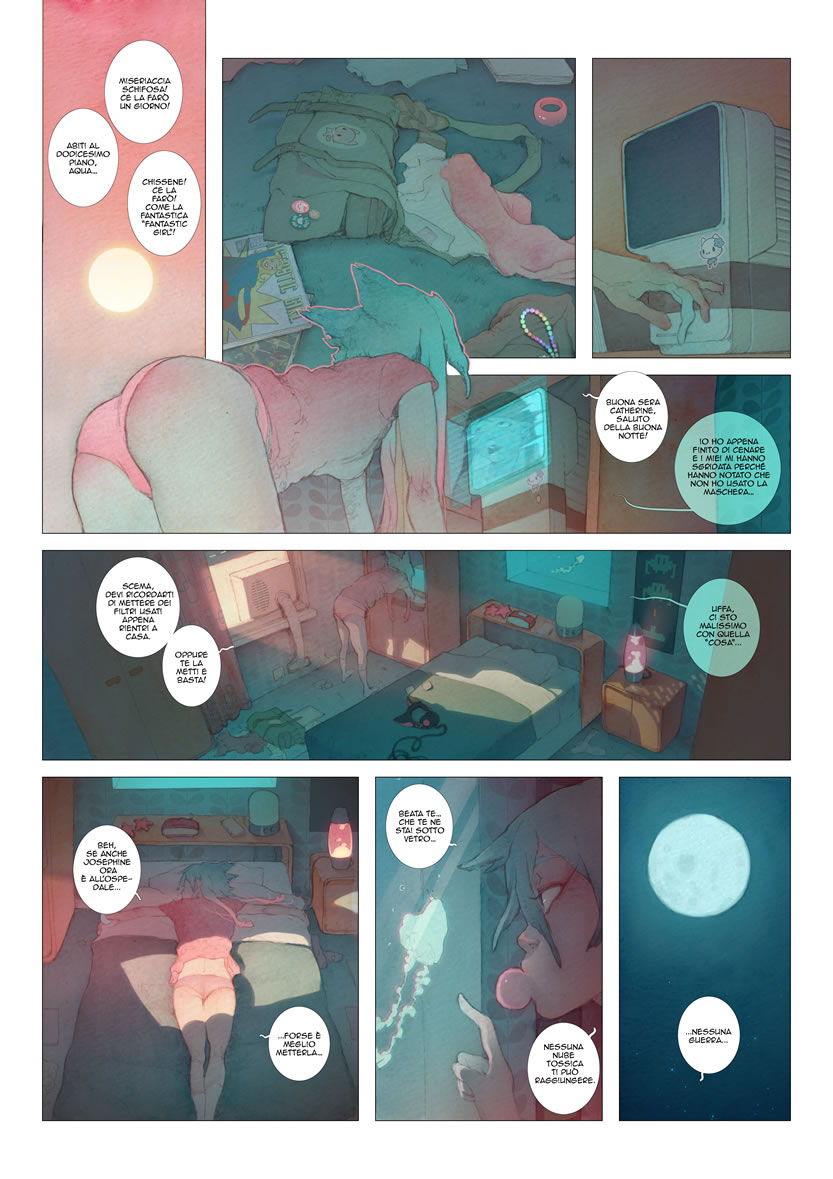 L’autrice e disegnatrice Angela Vianello ci accompagna in una storia oscura ambientata in un futuro buio e mortalmente inquinato, un fumetto che affascina lo sguardo e sussurra alle paure delle adolescenti.