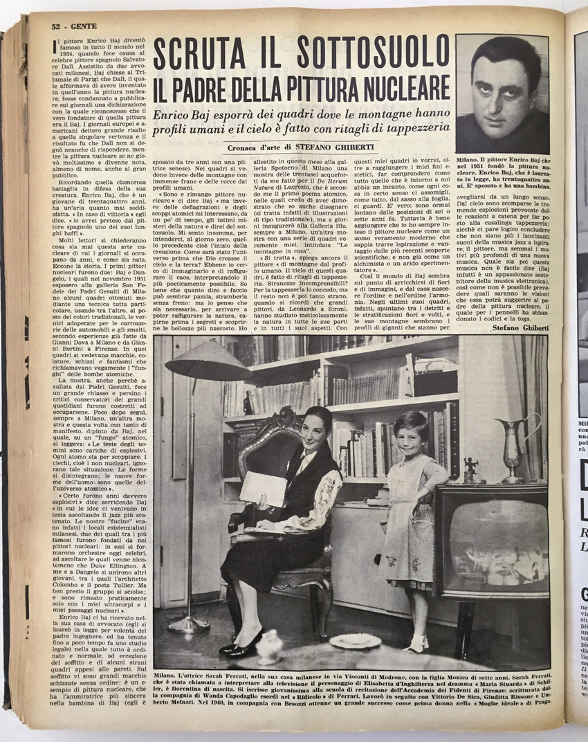 L’arte moderna com’era raccontata dai settimanali e dai mensili di attualità illustrata è la protagonista di “BOOM 60! Era arte moderna”, la mostra dedicata all’arte tra i primi anni Cinquanta e i primi Sessanta e alla sua restituzione mediatica, tramite i popolarissimi canali di comunicazione di massa appena inaugurata al Museo del 900 di Milano fino al 12 marzo 2017, a cura di Mariella Milan e Desdemona Ventroni con Maria Grazia Messina e Antonello Negri.