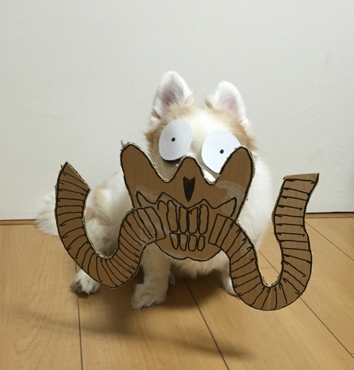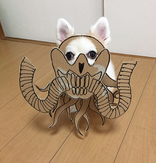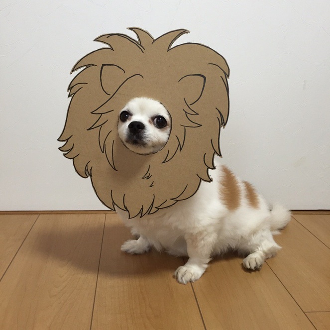 A lei piace ritagliare figure di diverso tipo dal cartone per creare piccoli travestimenti, spesso tratti da manga, film o anime, mentre lui, il piccolo Chihuahua Mametaro adora indossarli e mettersi in posa per farsi fotografare.