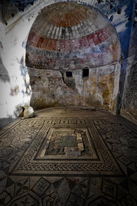 Colonne di marmo nero provenienti dall’Africa, un affresco policromo che riproduce divinità marine, il pavimento a mosaico con delfini che saltano tra le onde. Stiamo parlando della grande Villa romana di Starza della Regina, vicino a Somma Vesuviana (Napoli) che potrebbe essere stata l’ultima dimora dell’imperatore Ottaviano Augusto. Le strutture finora riportate in luce fanno parte di un ampio edificio romano, costruito nella prima età imperiale che continua a vivere fino al V secolo d.C., cambiando nel tempo carattere e funzione, fino alla eruzione vesuviana del 472 d.C., che lo seppellì per oltre la metà della sua altezza. La prima scoperta avvenne in epoca fascista, intorno agli anni 30 e in modo totalmente casuale con il ritrovamento di strutture murarie durante i lavori agricoli. Lo scavo riportò alla luce una piccola parte delle strutture murarie e “colonne e capitelli di marmo, pavimenti in mosaico, bellissimi frammenti statuari di un personaggio in abito eroico, stucchi policromi” tanto da far pensare che si trattasse della residenza dove morì l’imperatore Ottaviano Augusto.