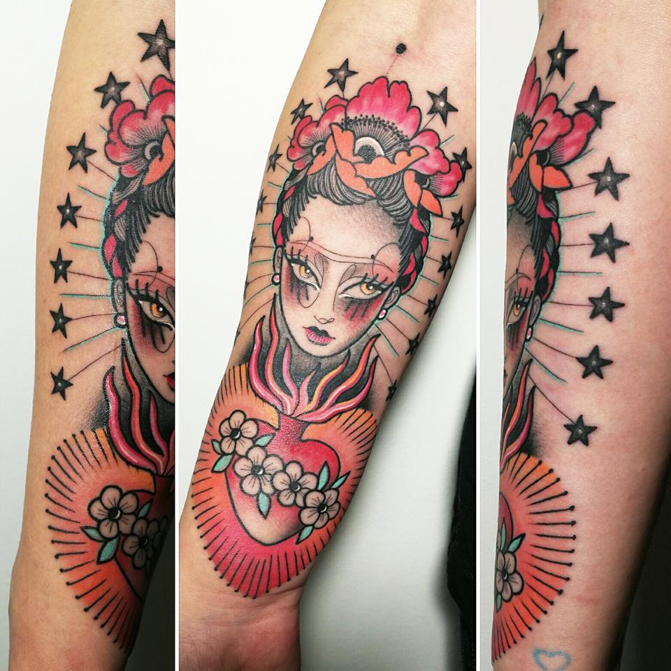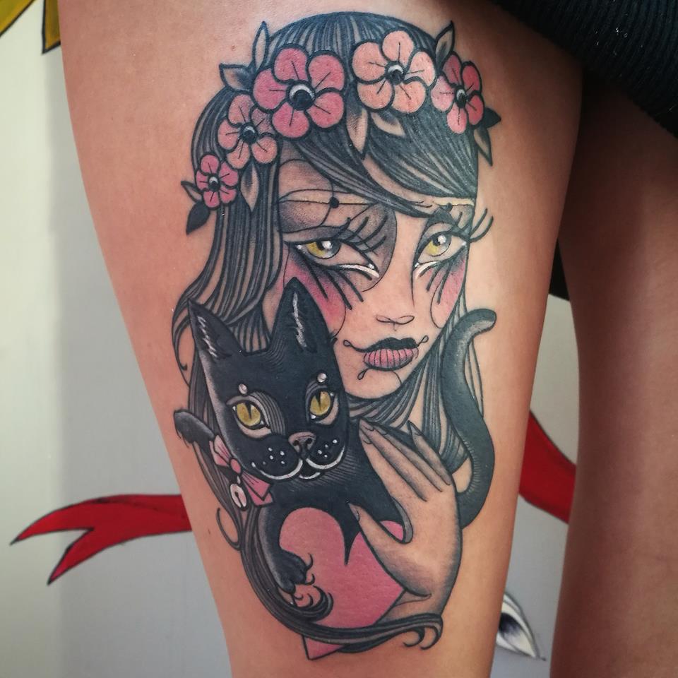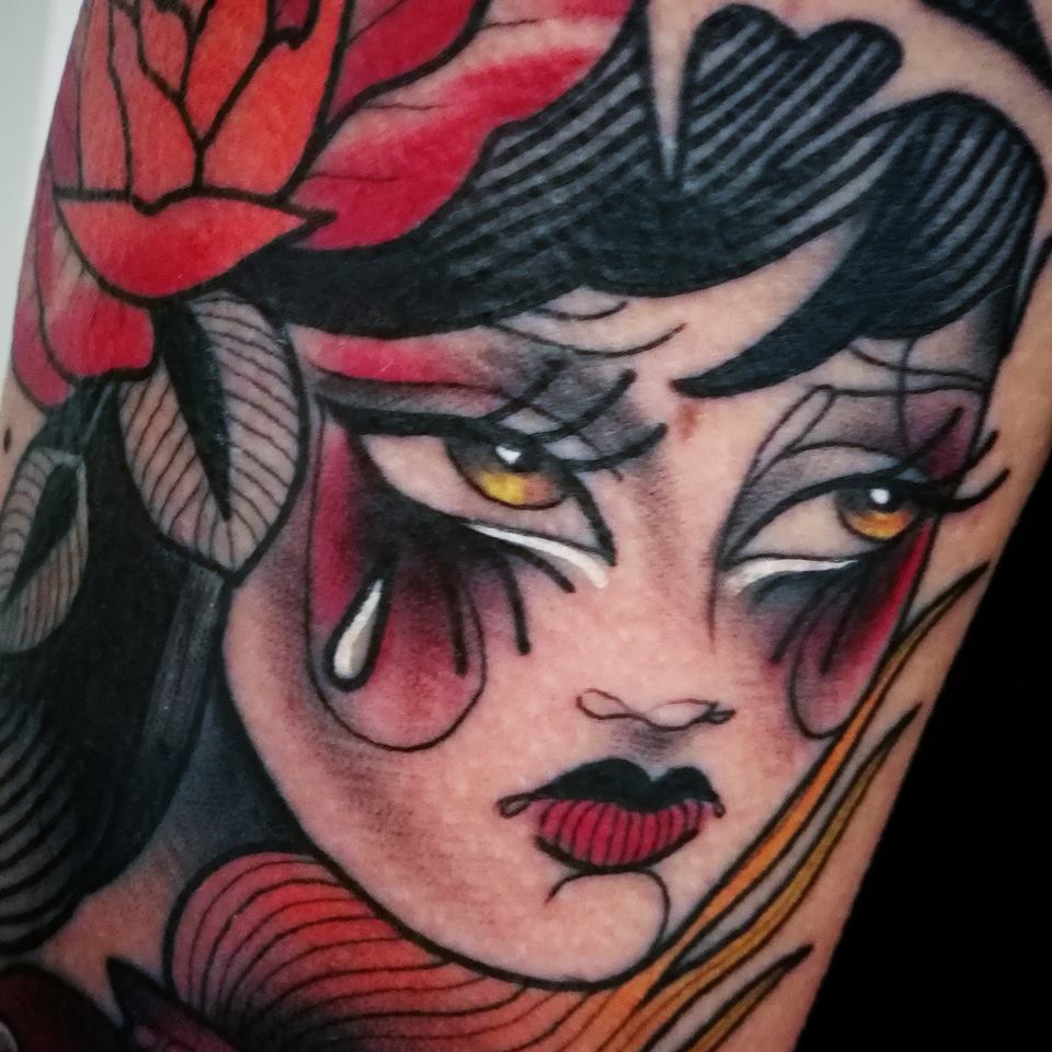 La sua dedizione per l’arte del tatuaggio è totale e la esprime con forza attraverso le sue opere dal sapore romantico e passionale, come le figure femminili morbide e sinuose dagli sguardi maliziosi o pensierosi, ognuna in grado di comunicare emozioni attraverso gli occhi e i movimenti delle mani.