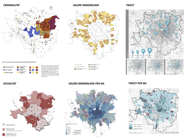 Il lavoro, seguito dai professori Boatti e Rossi, ha visto all’opera 32 studenti che hanno compiuto un’analisi su tutta la città per poi passare a occuparsi dei singoli municipi. I risultati del loro lavoro sono soprattutto grafici: cartine tematiche, grafici, simulazioni che hanno esposto attraverso slide molto ben realizzate dalle tematiche importanti come quella che mostra le zone suddivide per tasso di criminalità oppure quella che mostra il tessuto urbanizzato, alcune sono davvero divertenti, una delle più simpatiche è quella che ritrae i quartieri che twittano di più.