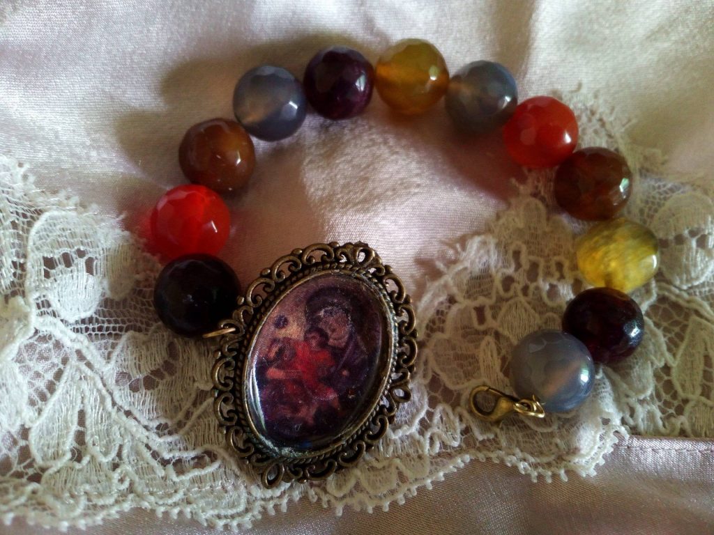 Per realizzare i suoi piccoli tesori Alice utilizza alcuni materiali semplici di riciclo e riuso come la carta, il metallo, il legno e la fettuccia di cotone, per poi passare alle basi cameo in ottone traforato e alle pietre dure preziose o semipreziose come il corallo, le perle barocche, il turchese, il lapislazzuli, la pietra lavica e l’agata. Importantissima è la ricerca iconografica, Alice seleziona le immagini che più colpiscono l’immaginario e che meglio rispecchiano la sua personalità, il suo carattere, i suoi sentimenti e il suo mondo interiore. Fatto questo, inizia il processo di produzione dove l’assemblaggio è parte famentale del lavoro, stando particolarmente attenta che tutti gli elementi si amalgamino in perfetta sinergia.