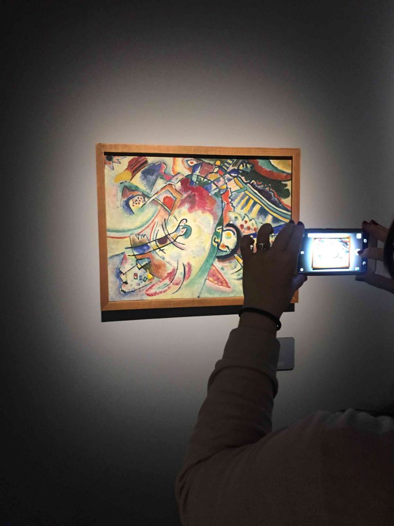 Uno dei più grandi desideri di Kandinskij era di riuscire a mettere in connessione lo spettatore con le sue opere: “Per anni e anni ho cercato di ottenere che gli spettatori passeggiassero nei miei quadri: volevo convincerli a dimenticarsi, a sparire addirittura lì dentro. A volte ci sono riuscito, ne ho visto l’effetto sui loro volti”.
