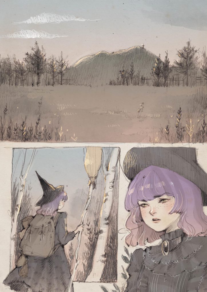 “Francis è una storia autoconclusiva, in cui ho cercato di far convivere il mio interesse per illustrazione e fumetto – dichiara l’autrice Jessica Cioffi – È la terza pubblicazione che realizzo insieme a Shockdom, e probabilmente quella più vicina ai risultati grafici che vorrei ottenere in futuro. Perciò sono grata di aver avuto la possibilità di crescere di pubblicazione in pubblicazione, e spero di poter continuare. In questa storia, l’unione tra esperienze reali e immaginarie è molto sentita; la storia è infatti ambientata ai piedi del Monte Orfano, dove vivo io stessa. Ma è allo stesso tempo un luogo senza tempo che non corrisponde del tutto alla realtà; calata in questo scenario vive infatti la protagonista, Metillia, che si trova ad affrontare una difficile prova nella sua carriera di strega. Il destino le porterà in aiuto Francis, uno spiritello evocato in modo inaspettato, che metterà in dubbio le sue scelte e i suoi desideri. Francis stesso rappresenta l’inaspettata svolta cruciale, che sfugge al controllo e alle previsioni: Francis è l’imprevisto.”