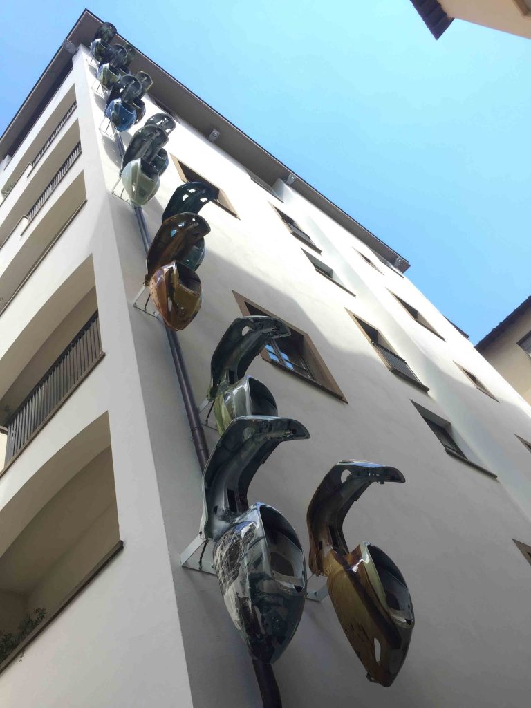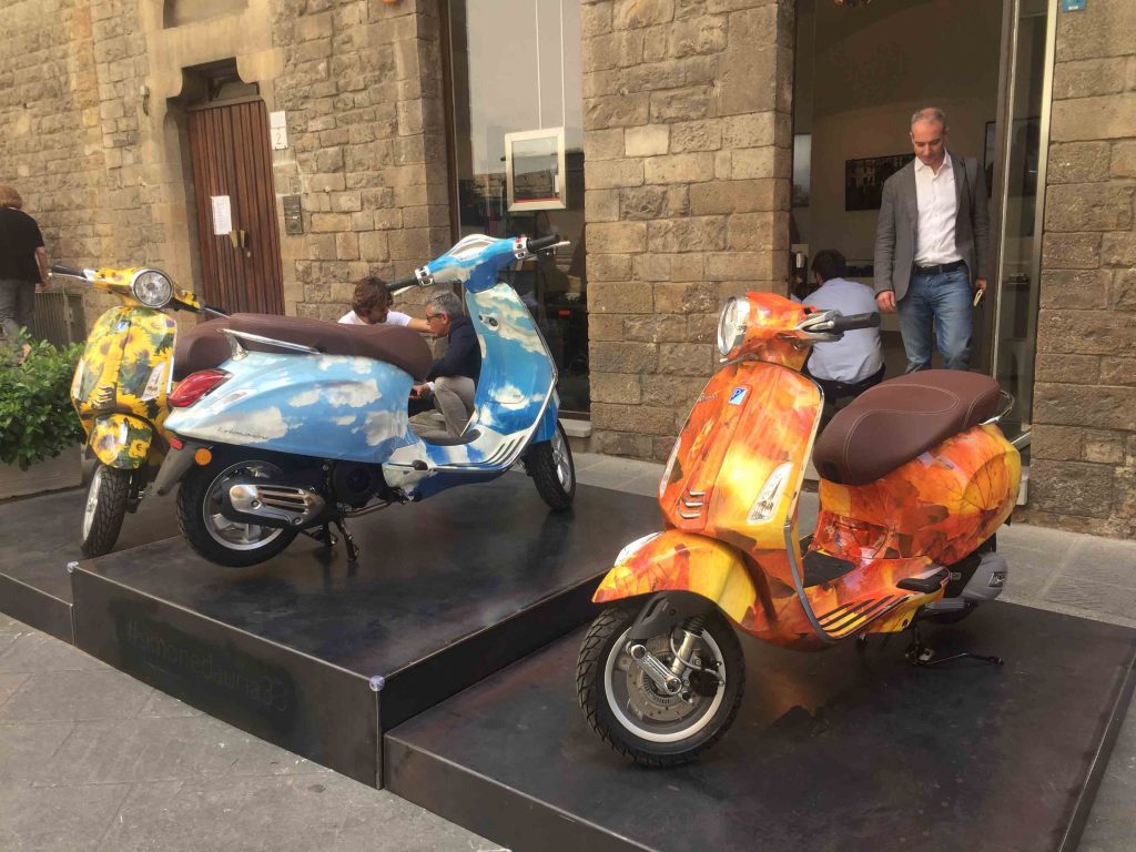 D’Auria, direttore artistico dell’operazione, ha individuato in Vespa un’icona Pop universalmente riconosciuta del Made in Italy, e ha ancorato 12 scocche alla facciata dell’hotel fiorentino, colorate con la tecnica del Water Transfer Printing, ognuna raffigurante un diverso habitat naturale, questa prospettiva aiuta lo spettatore a cambiare il proprio punto di vista e orientarlo verso l’alto. Il progetto si completa in piazza di Vicolo dell’Oro con un Selfie corner: tre Vespe costumizzate dall’artista verranno lasciate a disposizione dei visitatori per diventare le location dei loro selfie condividendoli con gli hashtag #galleryhotelart e #vespa