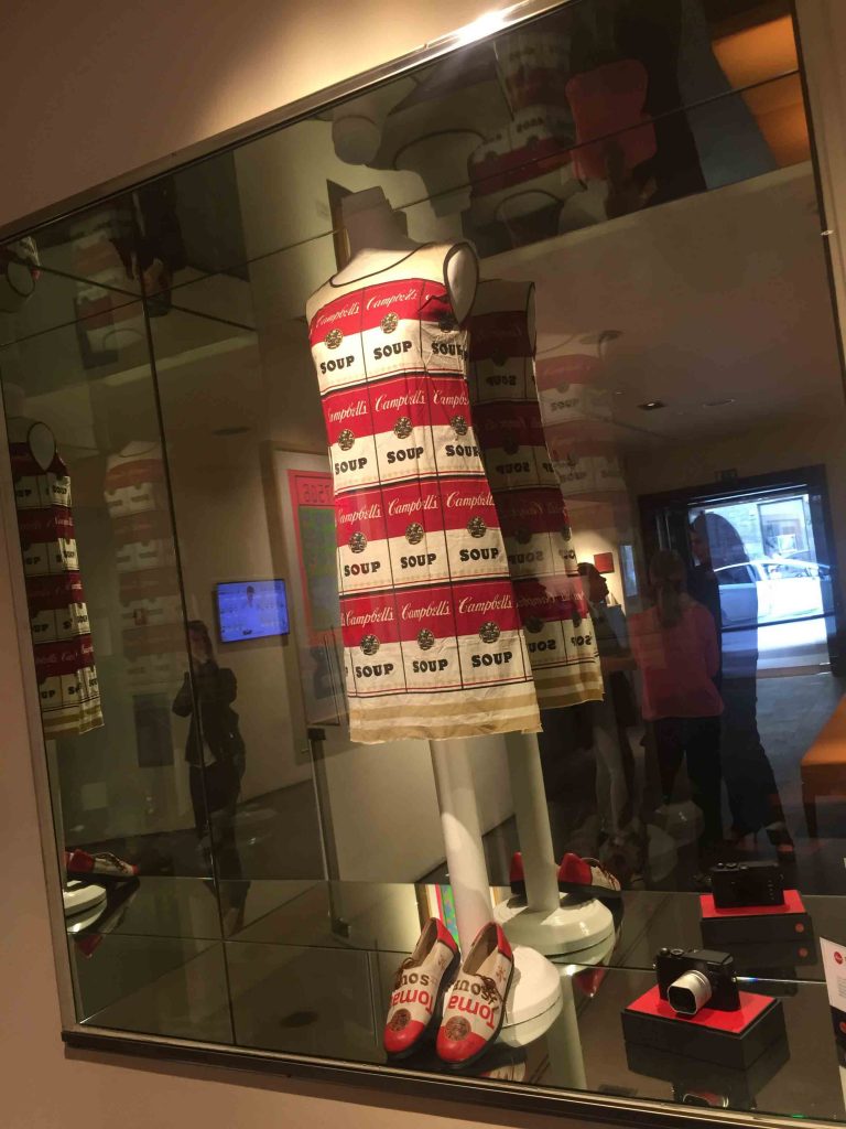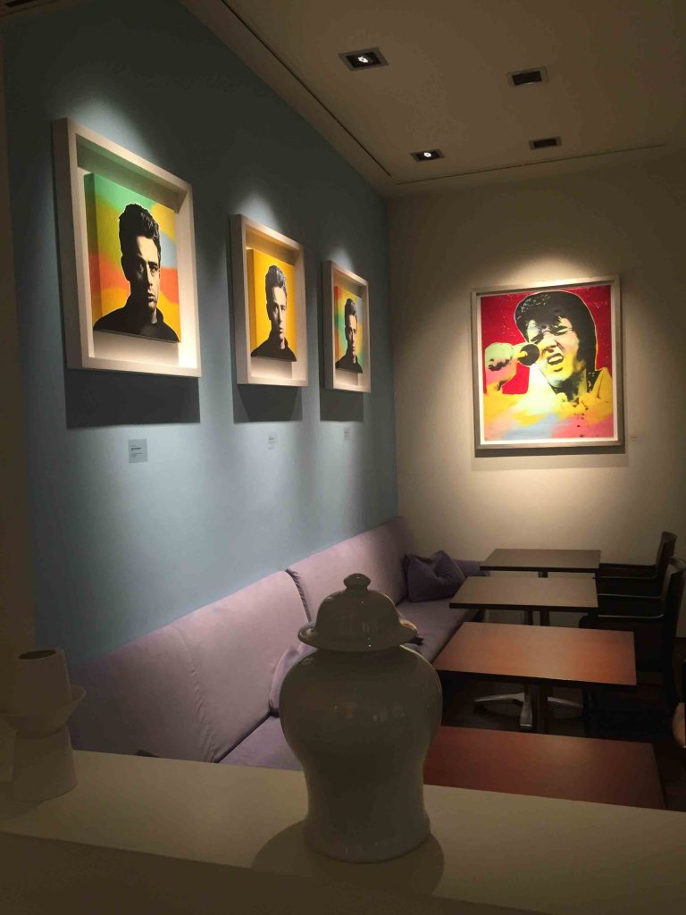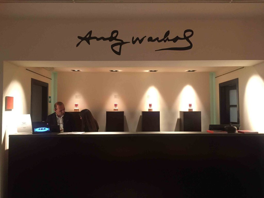 La mostra Andy Warhol Forever, collocata all’interno dell’Hotel, presenta sedici lavori, provenienti dalla Fondazione Rosini Gutman, un excursus veloce ma estremamente esplicativo che vede esposti due ritratti di Marilyn Monroe, le celebri lattine Campbell’s soup nella versione classica del 1967 e nella versione creata per le olimpiadi invernali di Sarajevo nel 1984, una serigrafia del ciclo Ladies and gentlemen, in questo ambito l’artista decise di prendere come modelle anche delle drag queen del club newyorkese The Gilden Grape confermando la sua grande vocazione alla scandalo e, uno dei vestiti Campbell Soup Dress del 1966 in carta cotone ‘usa e getta’, molto di moda allo Studio 54 dove, pare che le donne che li indossavano a fine serata rimanessero quasi completamente svestite perché il tessuto si scioglieva con il sudore. Il percorso espositivo si chiude con una serie di opere di Steve Kaufman, tra cui tre ritratti di James Dean, uno argentato di Elvis Presley, uno di Marilyn e altri soggetti pop.
