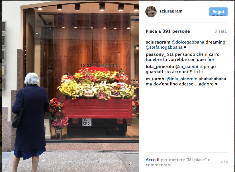 E adesso c’è anche un account instragram che ne celebra l’eleganza innata. Si chiama Sciuragram, raccoglie il meglio della “sciuraggine” scovata in giro per la città e non lo si può proprio non seguire.