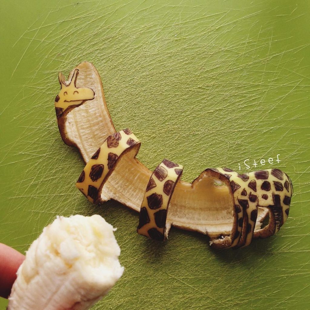 Keisuke Yamada, per esempio è un artista specializzato in sculture con le banane che nella vita fa l’elettricista di professione e nel tempo libero crea minuziose riproduzioni di personaggi famosi e oggetti vari. Un altro caso è quello di Stephan Brusche che trasforma le banane in pura creatività. In arte si fa chiamare iSteef ed è un graphic designer olandese che ha deciso di trasformare “l’unico frutto dell’amor” in vera e propria opera d’arte, semplicemente intagliandone la buccia, tanto che di lui il Time ha scritto che «è la ventata d’aria fresca che l’arte contemporanea aspettava da tempo».