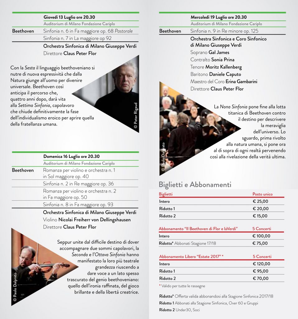 LaVerdi, L’Orchestra Sinfonica e Coro Sinfonico di Milano Giuseppe Verdi, presenta il ricco programma della calda stagione estiva 2017, fulcro dell’estate “Le Nove Sinfonie di Betethoven”, un evento a dir poco esclusivo e unico la cui integrale esecuzione di queste sarà affidata al talento artistico del nuovo direttore musicale, Claus Peter Flor. Inoltre, per i lettori di Fortementein sarà possibile partecipare a questa rassegna unica con una riduzione sul costo del biglietto, €20 anziché €25 e per gli under 30 €15.