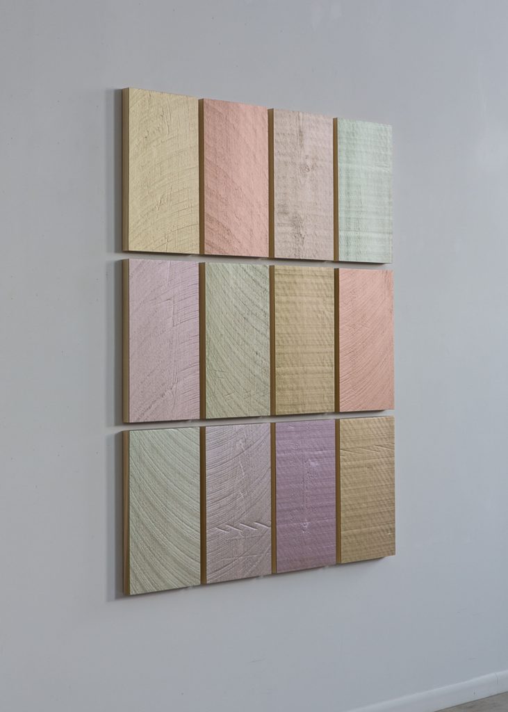 Winston Roeth dipinge pannelli monocromatici o bi-colore spesso combinati a formare un’unica installazione. Roeth gioca con diverse combinazioni di linee per esplorare i loro effetti sulla percezione umana. Dopo anni di esplorazione sulla luce e sul colore, arriva a sviluppare una tecnica precisa. Usando un pennello stende il pigmento puro, strato dopo strato, mischiandolo ad acqua e ad un’emulsione di poliuretano, finché l’intera superficie della tela non è stata ricoperta. Tutti i suoi sforzi sono incentrati nel tentativo di trovare la giusta saturazione del colore, in modo tale che dai pigmenti scaturisca luce pura.