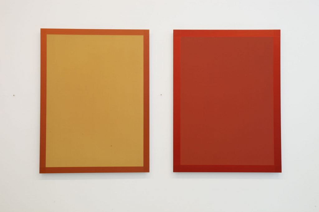 Il colore è certamente il fil rouge che lega i tre artisti che solo a prima vista sembrano dipingere quadri monocromatici. Si tratta di opere caratterizzate da un’espressione contemporanea radicale, che li separa dalla produzione minimalista e monocromatica e dall’intellettualismo freddo dei concettuali. Ciò che più gli interessa è la tecnica e l’impressione che suscitano sullo spettatore. La superficie dipinta sembra sparire e aprire la visione di uno spazio indefinito grazie alle numerose velature.