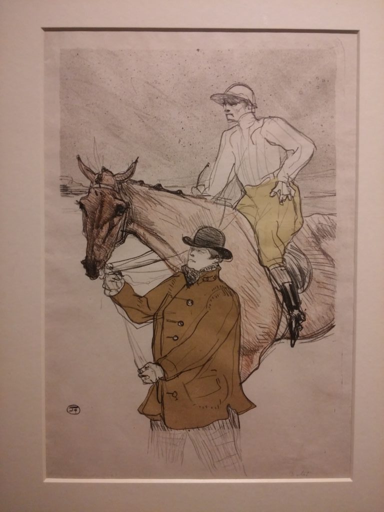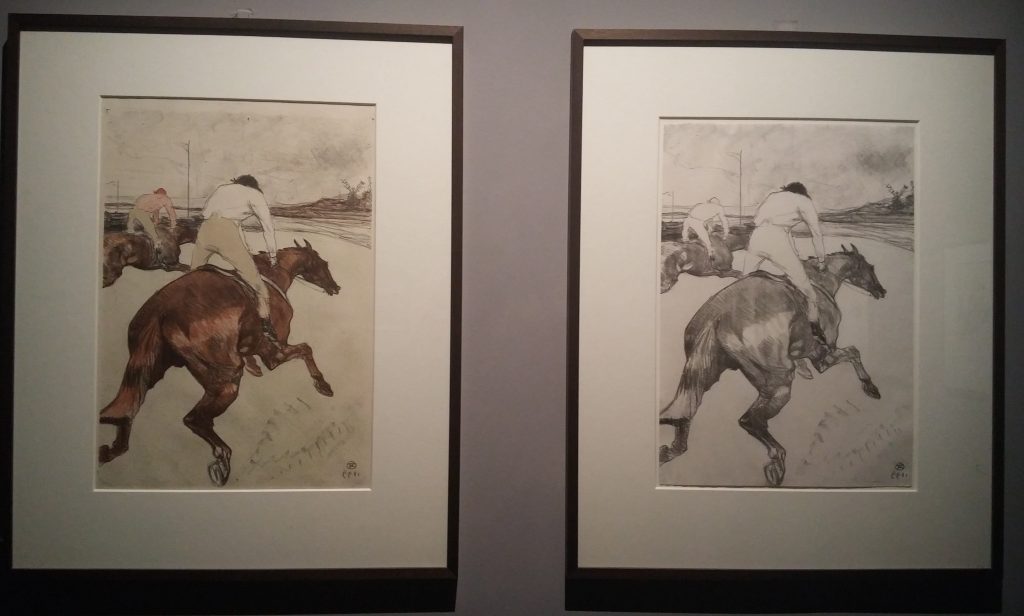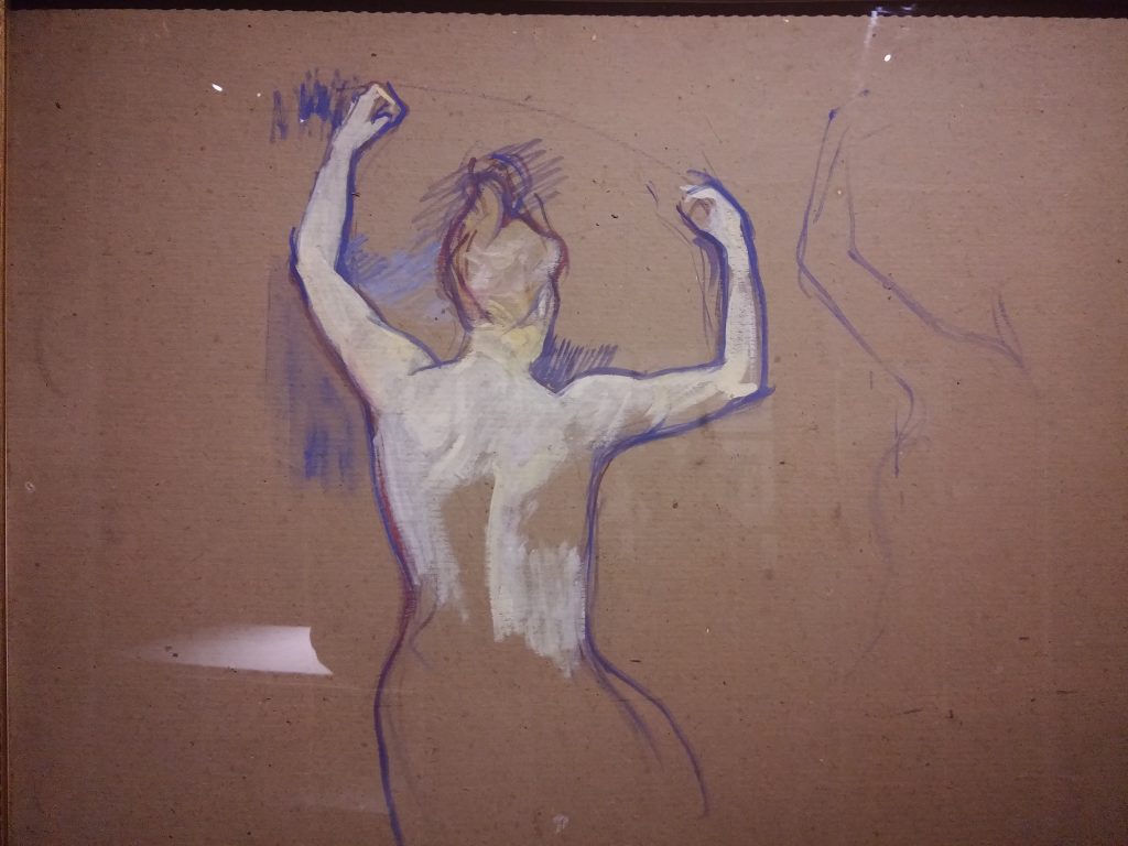In scena, ed è proprio il caso di utilizzare la metafora teatrale, fino al 18 febbraio 2018 a Palazzo Reale, tutta la parabola biografica e artistica di questo straordinario artista con oltre 200 opere ben 35 dipinti, oltre a litografie, acqueforti e affiches. Un tuffo nel vivace e frizzante mondo dei cafè-concert, in quello caleidoscopico del circo, nelle frenetiche danze del Moulin Rouge e del Moulin de la Galette fino al Divan Japonais, ma anche in quello intimo e quotidiano di boudoir e case chiuse della Parigi della seconda metà dell’ Ottocento, lo spettacolo che la vita quotidiana gli offriva e che, seguendo il consiglio di Manet, era il soggetto che bisognava dipingere. La mostra, a cura di Danièle Devynck (direttrice del Museo Toulouse-Lautrec di Albi) e Claudia Beltramo Ceppi Zevi, infatti, è articolata in sezioni tematiche che tracciano l’evoluzione stilistica dell’autore, delineata in tutte le sue fasi di maturazione, dalla pittura alla grafica.