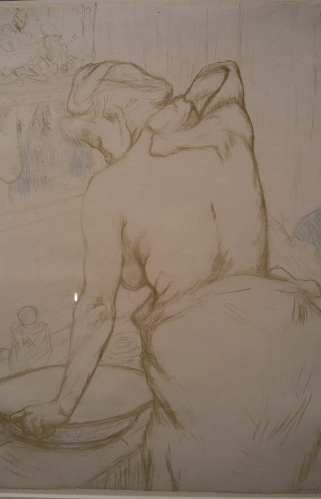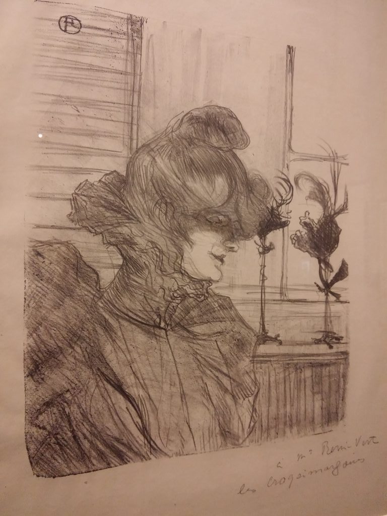 In mostra s’incontra la serie “Elles”, dedicata alla descrizione della vita nelle case chiuse, rappresentate nei gesti semplici della loro vita quotidiana, alternate ad alcune rare e preziose stampe, certamente note a Toulouse-Lautrec, di maestri giapponesi, fra le quali la serie completa della Maison verte di Utamaro che raffigura l’ambiente dei postriboli, con tutto l’universo di uomini e di donne che li abitavano.