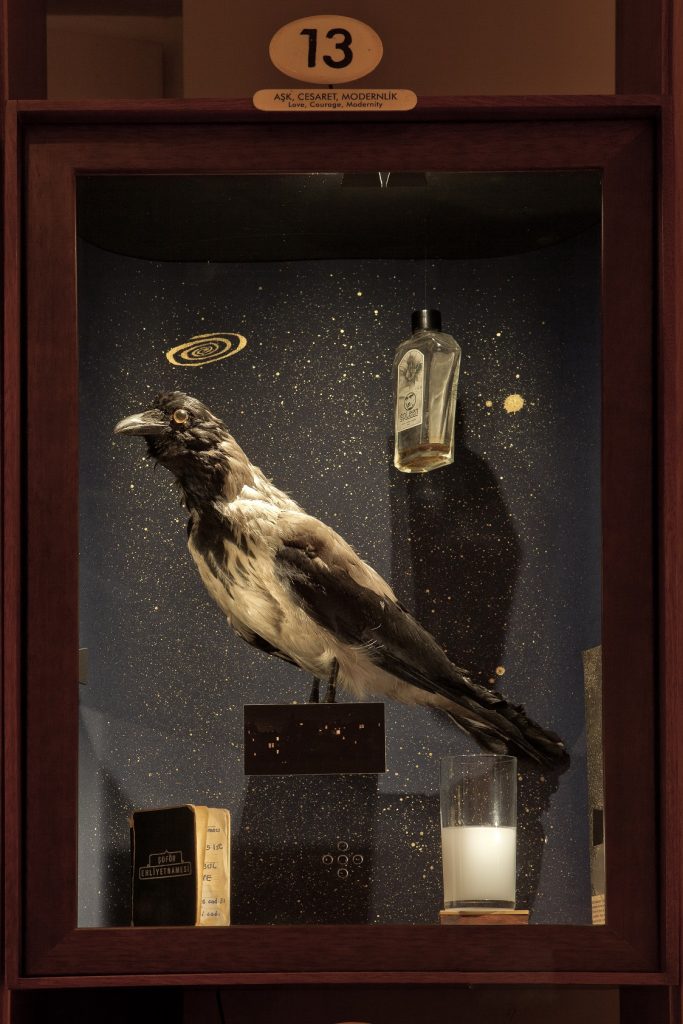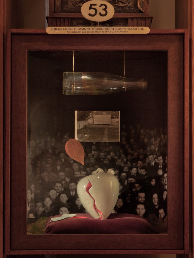 Tra una scarpa gialla, una fotografia e un tassametro, nel percorso anche istallazioni video in cui è la voce dello stesso Orhan Pamuk a narrare il senso della sua straordinaria operazione museale nata nel 2012 e premiata con l’European Museum of the Year Award. L’amore di Kemal per la bella cugina Füsun prende corpo tradotto “visivamente” attraverso una serie di vetrine, una per ogni capitolo del libro, affollate di oggetti, memoria dell’amore ma anche memoria delle cose, memoria dell’ emozione e del sentimento.