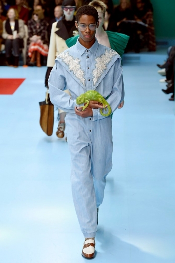 Atmosfere surreali da sala operatoria per lo show di Alessandro Michele per la collezione fall/winter 2018/19 di Gucci. Il messaggio è l’invito a non uniformarsi, ad amare le differenze a celebrare la propria unicità. Ieri alle 15 spaccate, sentenziate da un timer, sono nati dei cyborg dalle sembianze umane ma che in grembo portano cuccioli di drago o di camaleonte e in testa, quando questa è attaccata al collo, spuntano corna da fauno.