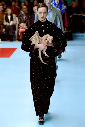 Gucci A/I 2018/2019 porta in passerella cuccioli di drago, occhi sulle mani e corna di fauno