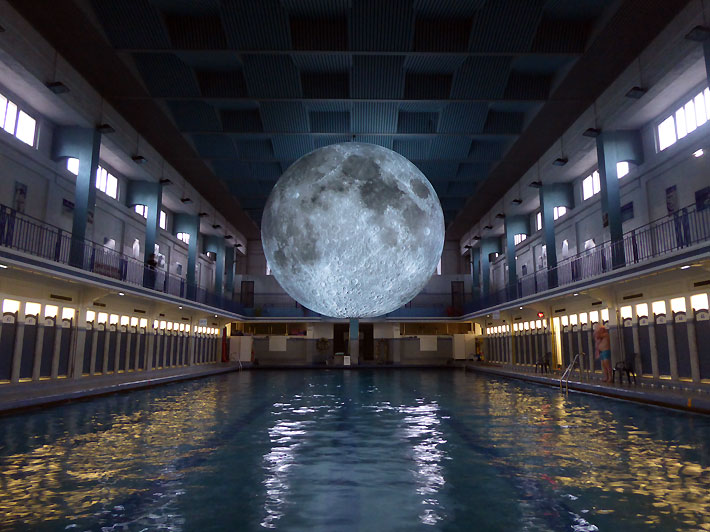“Museum of the Moon”, questo il nome dell’installazione, ricrea atmosfere uniche e suggestive grazie ad una sfera di 7 metri di diametro illuminata dall’interno su cui vengono proiettate delle immagini della superficie lunare fornite dalla NASA. Ogni centimetro della sua superficie rappresenta circa 5 chilometri di superficie lunare. Ogni installazione poi è accompagnata da una composizione sonora creta da BAFTA e dal compositore Dan Jones, vincitore del Premio Ivor Novello.