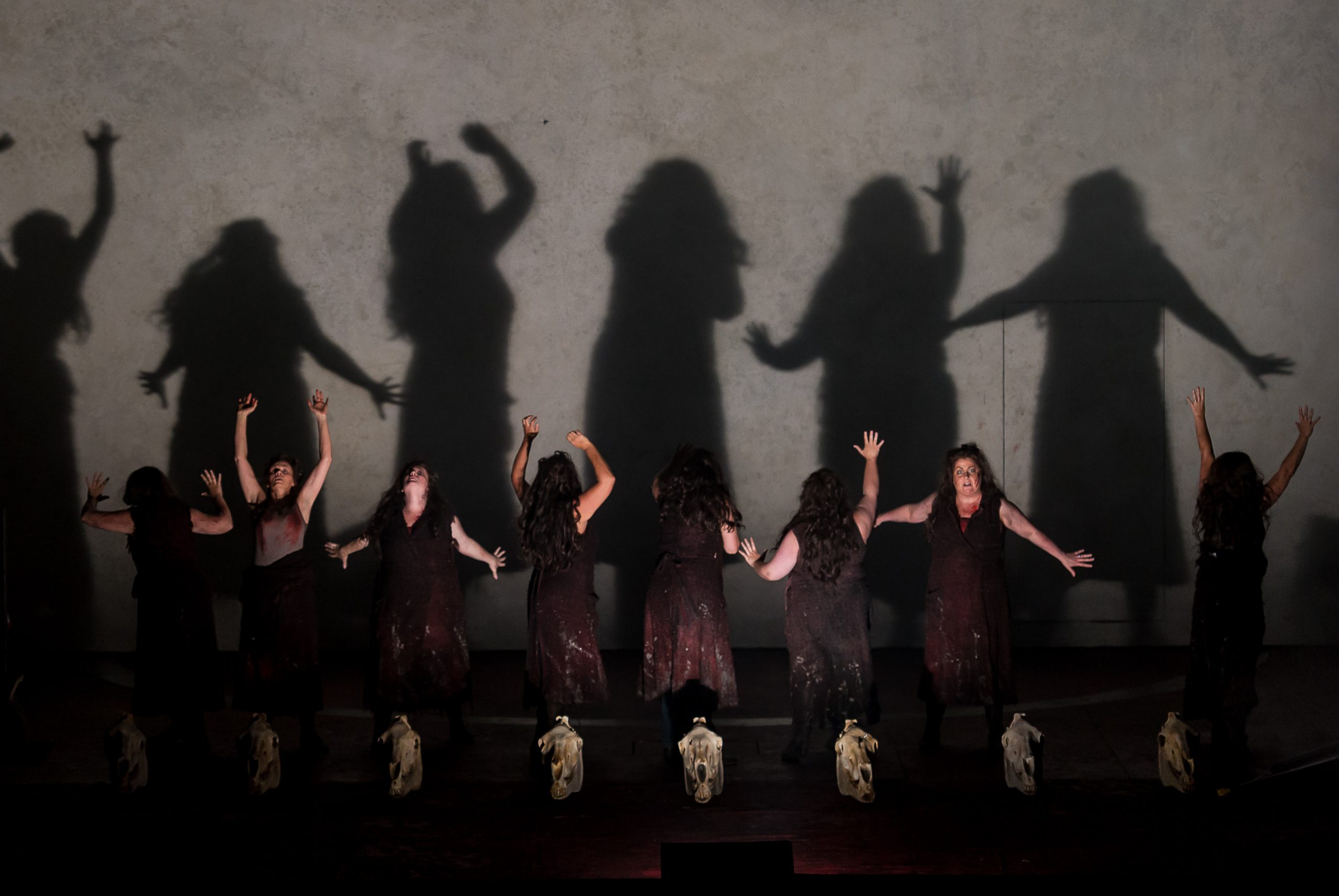 Alwyn Mellor, Katherine Broderick, Karen Cargill, Anna Burford, Elisabeth Meister, Sarah Castle, Clare Shearer and Madeleine Shaw (as The Valkyries) and Bryn Terfel (as Wotan); At the Royal Opera House, London, UK; Credit: Clive Barda / Royal Opera House / ArenaPAL