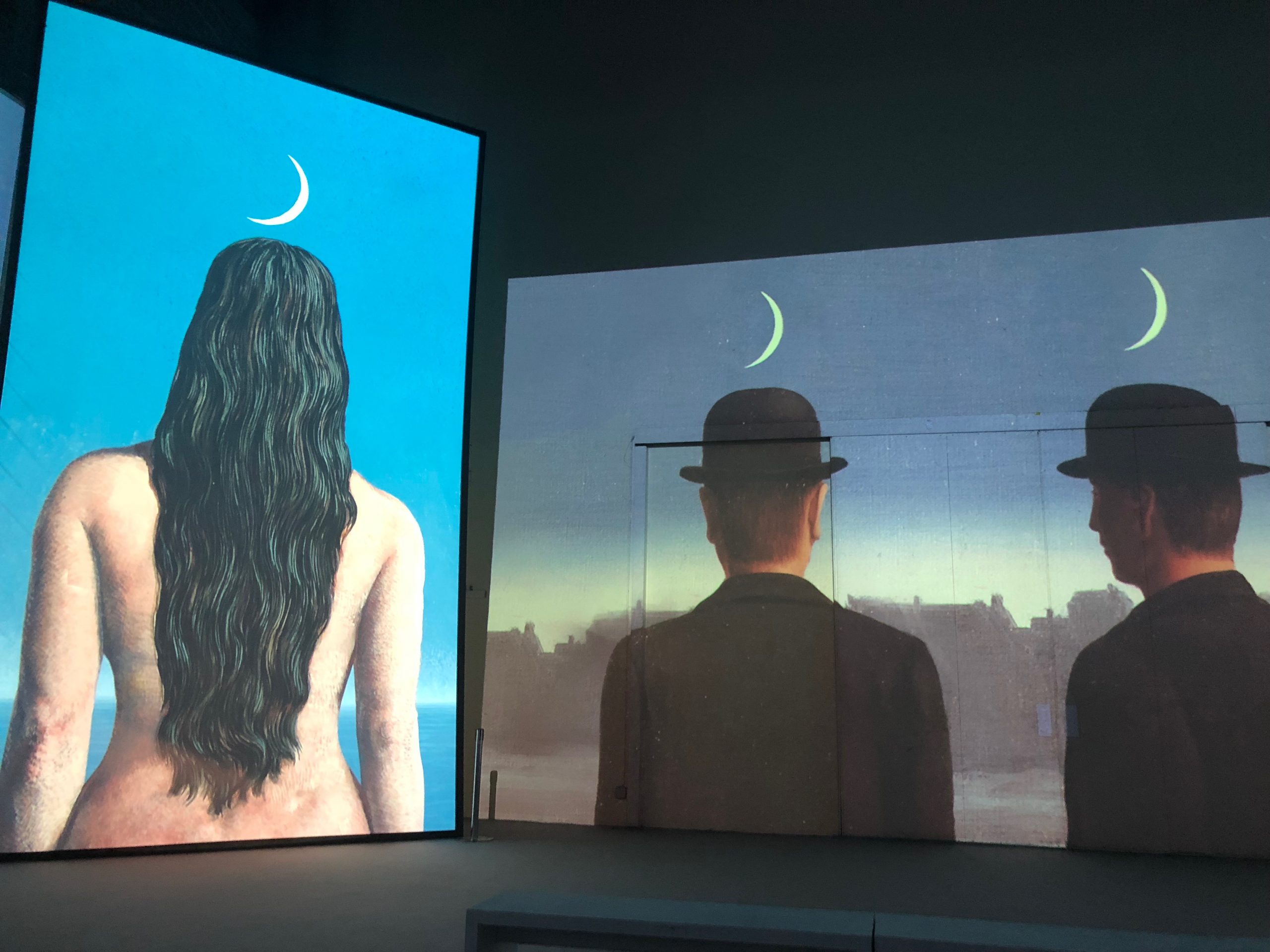 Dalle pareti al pavimento le immagini delle opere diventano un unico flusso di sogno, forme fluide e smaterializzate in motivi evocativi dell’arte di Magritte, in un viaggio che attraverserà tutti i momenti pittorici, dalla prime opere surrealiste fino al periodo post bellico passando per la Parigi degli anni ’20.