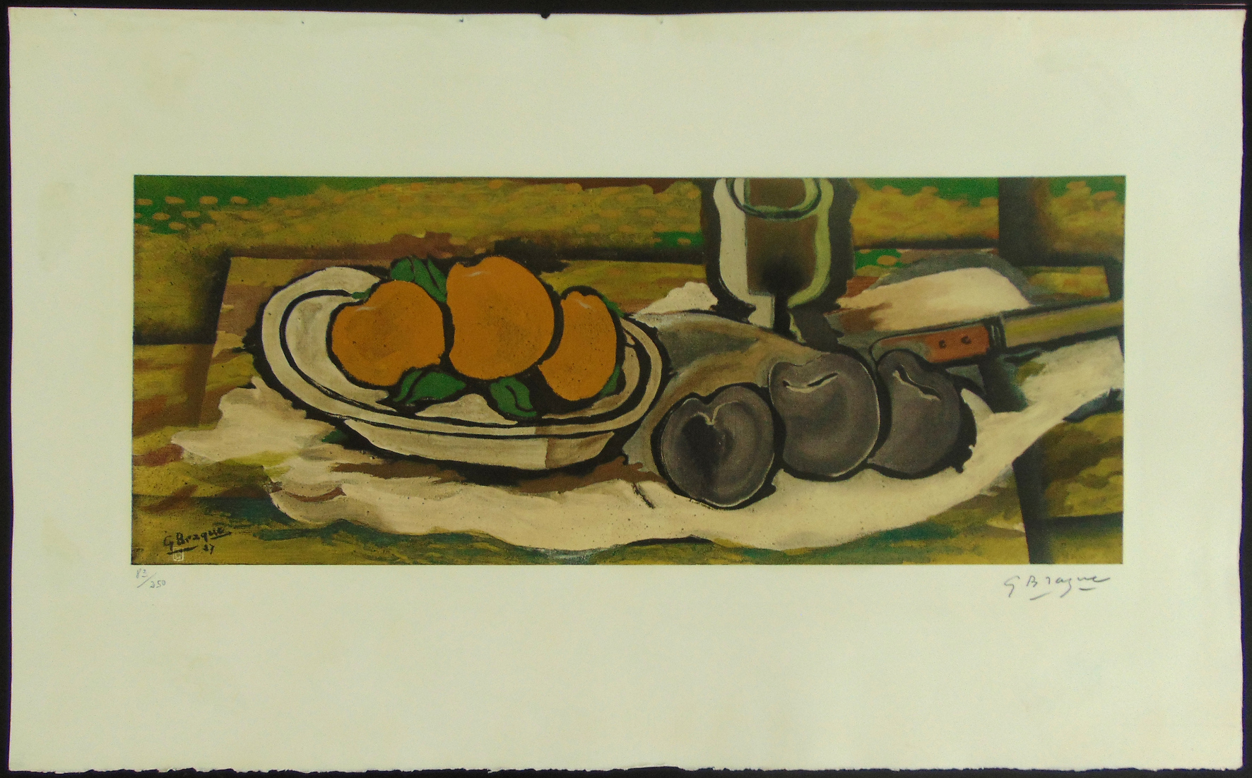 Durante tutta la carriera, sin dagli inizi del Cubismo, Braque ha sempre affiancato la produzione di quadri e sculture con quella di opere grafiche: litografie, acqueforti, acquetinte, xilografie e illustrazioni, che diventano altrettante testimoni del suo percorso artistico. Da un’iniziale attenzione minuziosa per gli oggetti quotidiani, indagati analiticamente, le incisioni assumono un impatto visivo maggiore col passare dei decenni, soprattutto grazie alla raffinata componente cromatica negli anni ’40 e ’60.