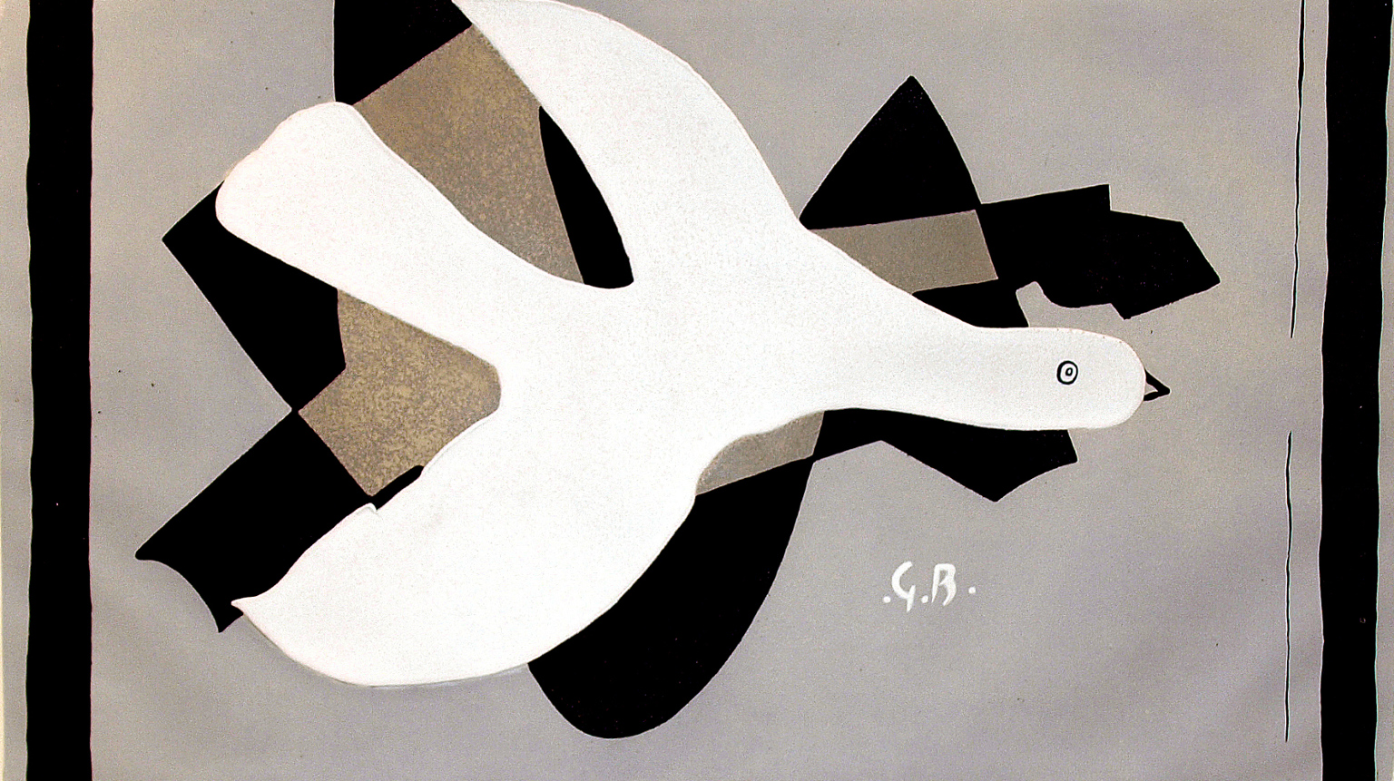 Oltre alle numerose nature morte, sapientemente orchestrate tra frutti e piatti, bicchieri e teiere, o scene con figure di donna, protagonista di molte opere in mostra è anche il tema del cielo stellato o attraversato da uccelli in volo: la colomba, archetipo di libertà e pace, diviene soggetto privilegiato per la scomposizione dell’anatomia in forme geometriche e per lo studio del movimento. Questo tema assume primaria importanza dal 1952, quando al pittore viene chiesto di decorare i soffitti di una sala del Louvre, per la quale dà vita a due silhouette nere, contornate di bianco, che volteggiano su un cielo blu intenso.