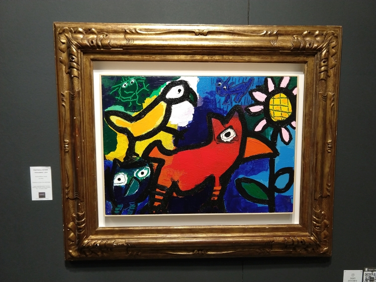 Allo stand della galleria Casati Arte Contemporanea si incontra, invece, un pittore autodidatta, un po’ naïf forse, che lascia veramente briglia sciolta alla fantasia, all’emozione e al pennello. Il mondo che Gianfranco Asveri dipinge, con tratti carichi di colore e materia, in modo istintivo, ma non caotico, è quello delle campagne piacentine, dove vive circondato da animali, ai quali dona un tocco di magia con la serie Abracadabra.