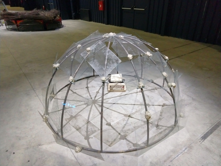 L’ingresso è dominato dall’imponente La goccia d’acqua (1987), l’igloo più grande realizzato da Merz per uno spazio espositivo interno; un lunghissimo tavolo attraversa l’enorme calotta di lastre di vetro, fino a un secchio in cui gocciola dell’acqua da un rubinetto. La tensione superficiale che tiene insieme la forma della goccia d’acqua è metafora della stessa fragilità che tiene insieme l’igloo di Merz.