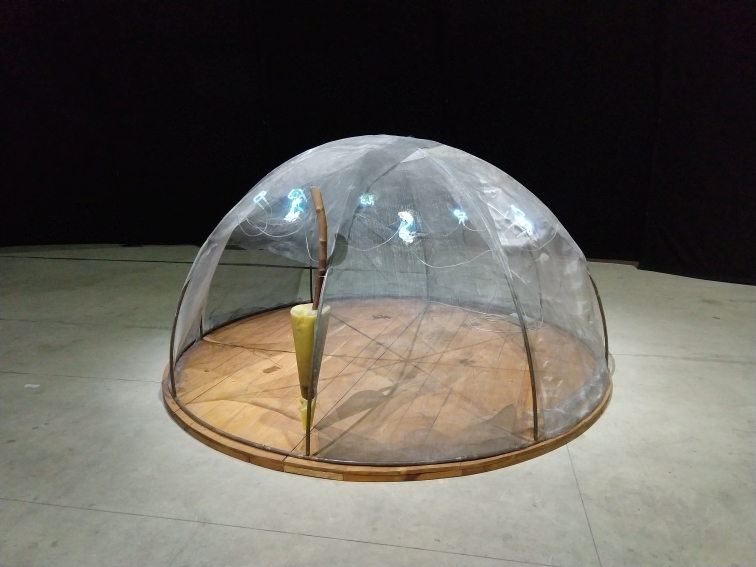 La forma dell’igloo rappresenta, per Mario Merz, un archetipo di abitazione primordiale, che delinea metaforicamente uno spazio interno, intimo e protetto, separato dall’esterno, a suo volta definito dalla presenza stessa dell’igloo. Tuttavia, è anche una forma architettonica complessa, come la cupola, uno spazio ideale concettualmente perfetto. Il susseguirsi degli Igloo, realizzati in anni successivi utilizzando materiali diversi, rappresenta anche una riflessione su come l’uomo moderno costruisca e abiti lo spazio cittadino, in cui convivono elementi naturali e artificiali, contrasti evidenziati dalle parole che Merz “scrive” con i tubi al neon.
