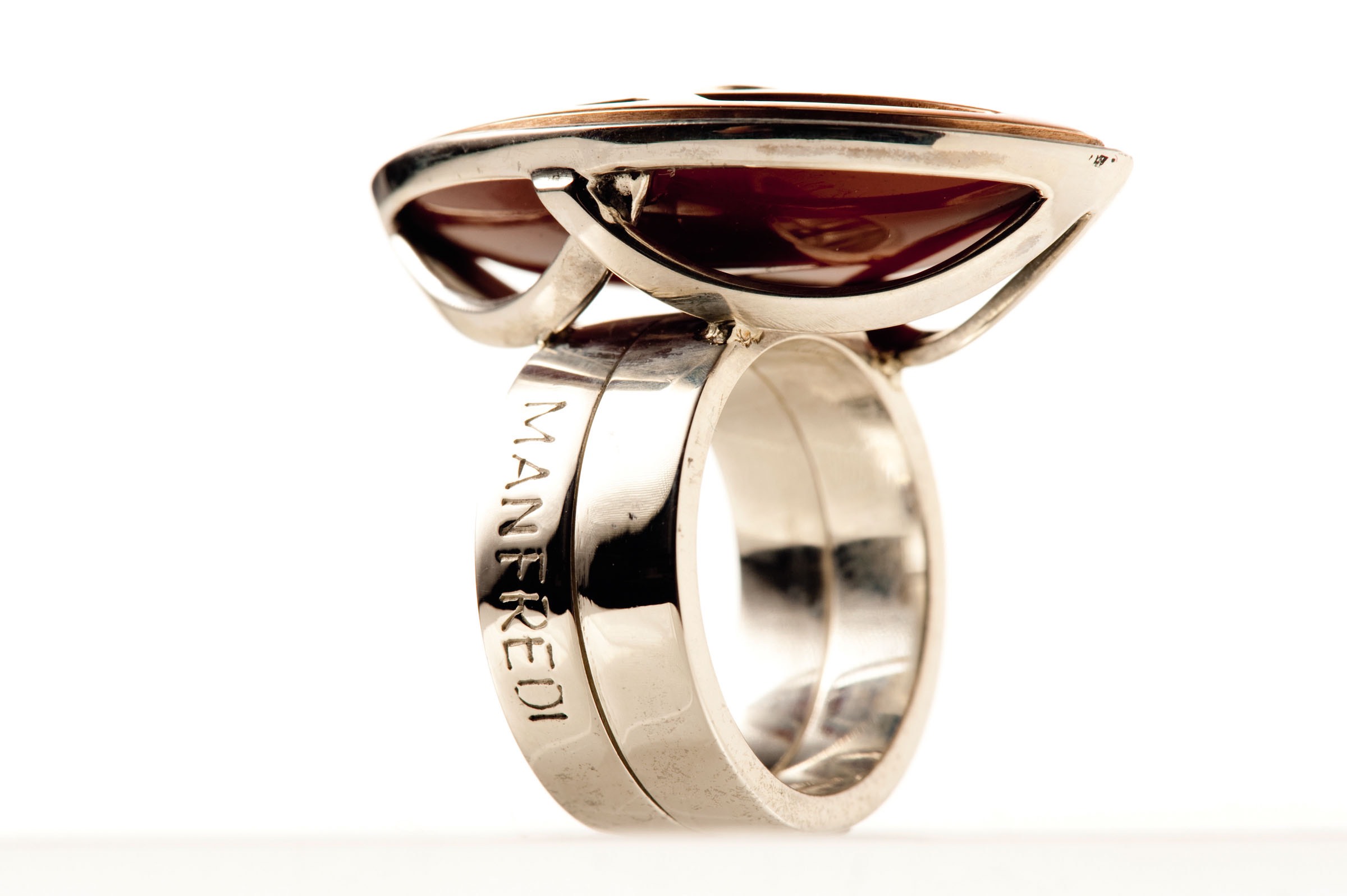 Riprendendo la struttura del Cenacolo, Giulio Manfredi pone come fulcro della sua opera la figura di Gesù, rappresentato da una corona sottile, ovvero una linea orizzontale di luce in oro bianco, con i simboli di un antico alfabeto che rappresentano i valori umani come la pace, la famiglia, l’amicizia; con al centro, un granato e un diamante, contrassegno di regalità.