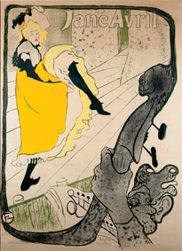 Quello di Henri, infatti, non è il classico mondo degli artisti del tempo che abbiamo imparato a conoscere, con le sue corte gambette storte ci catapulta nella Parigi più sconvolgente e inaudita, quella di Montmartre, del Moulin Rouge, dell’amore a pagamento, delle stelle effimere del cabaret, con le serate fra alcol e donne, le feste in costume e le autocaricature. Henri preferisce soggetti scabrosi e inusuali, il suo mondo è illuminato dalla cruda luce elettrica e dai fari della ribalta: ci appare sempre equivoco nei colori troppi accesi, nel trucco pesante, nelle grazie esibite, nei gesti eccessivi; eppure intensamente umano, capace di offrire, nonostante tutto, l’emozione pura della bellezza, i sentimenti sotto il cerone, il desiderio della tenerezza.