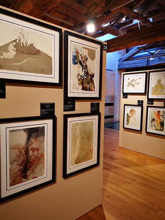 Il sogno, la simbologia e l’inconscio prendono vita nelle tematiche più disparate: religione, letteratura italiana e internazionale, poesie, amore e uno spazio dedicato al pubblico adulto, rivolto alle avventure amorose di Giacomo Casanova e di Tristan Corbiére. Il viaggio nei meandri dell’inconscio inizia con le tavole della Biblia Sacra, 105 serilitografie uniscono il sacro alla simbologia daliniana, un ritorno alla fede dal sapore mistico e profondo.