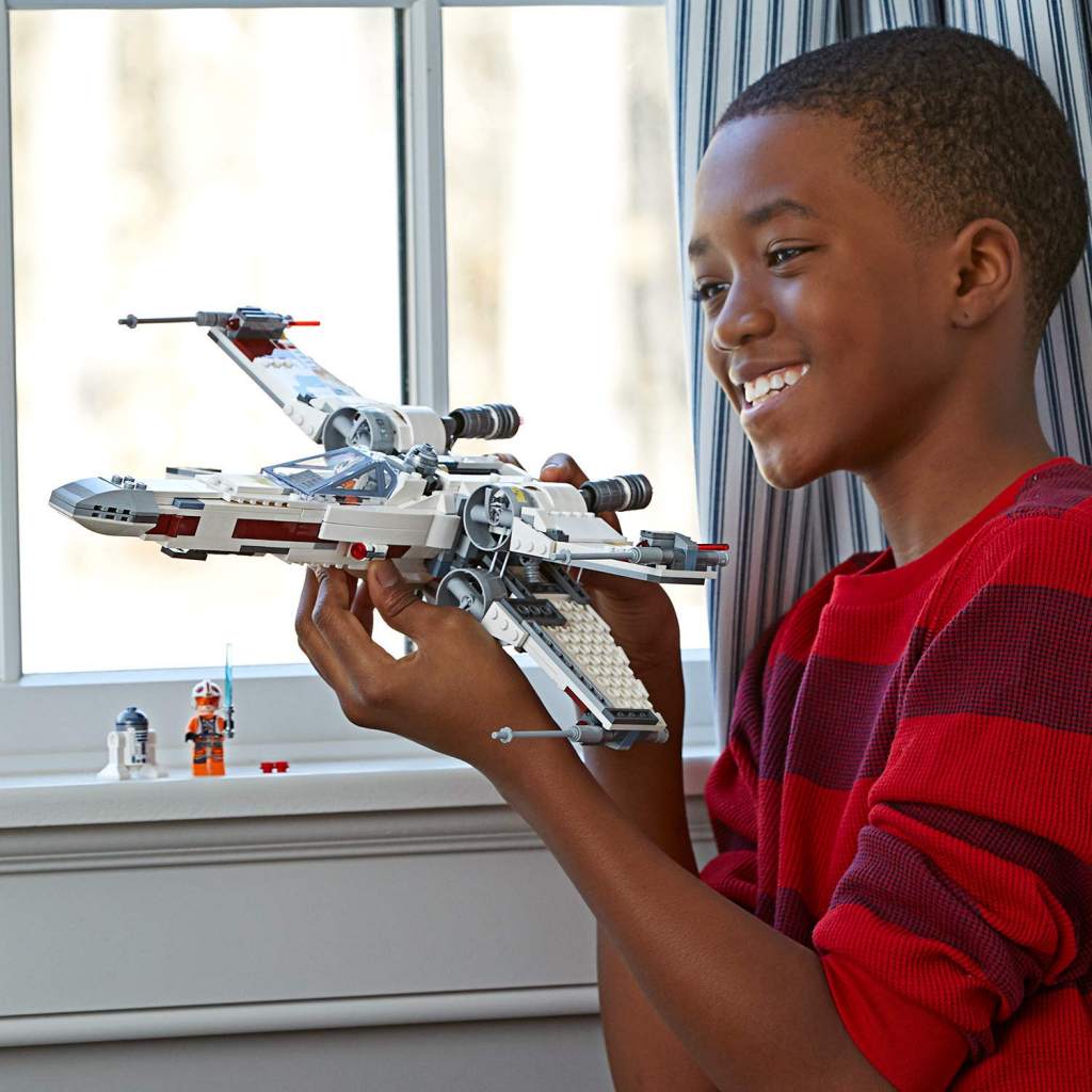 Le ore di volo non sono mai abbastanza, continuate l’avvenutira con lo X-Wing Starfighter, questo il link Amazon. Metti Luke Skywalker nella cabina di pilotaggio e posiziona R2-D2 dietro di lui. Solleva il carrello e lanciati nello spazio. Premi la leva per impostare le ali in modalità d’attacco e aziona gli shooter a bottoncini e gli shooter a molla. Puoi perfino cambiare le tegole per trasformare l’X-wing Red Five di Luke nell’X-wing Red Three di Biggs Darklighter.