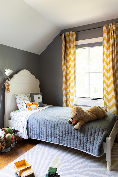 Il grigio è un colore molto adatto alla camera da letto per la serenità data dalle sue diverse tonalità. Se si dispone di una camera da letto padronale decorata nei toni del grigio, è possibile creare un effetto sorprendente incorporando un elemento suggestivo in giallo. Ad esempio, collocare una poltrona gialla creerà un centro d’attenzione, senza togliere serenità e calma alla stanza. Se volete portare calore, i professionisti di Houzz consigliano di introdurre tessuti vellutati, come coperte e cuscini in tonalità ocra o mostarda.