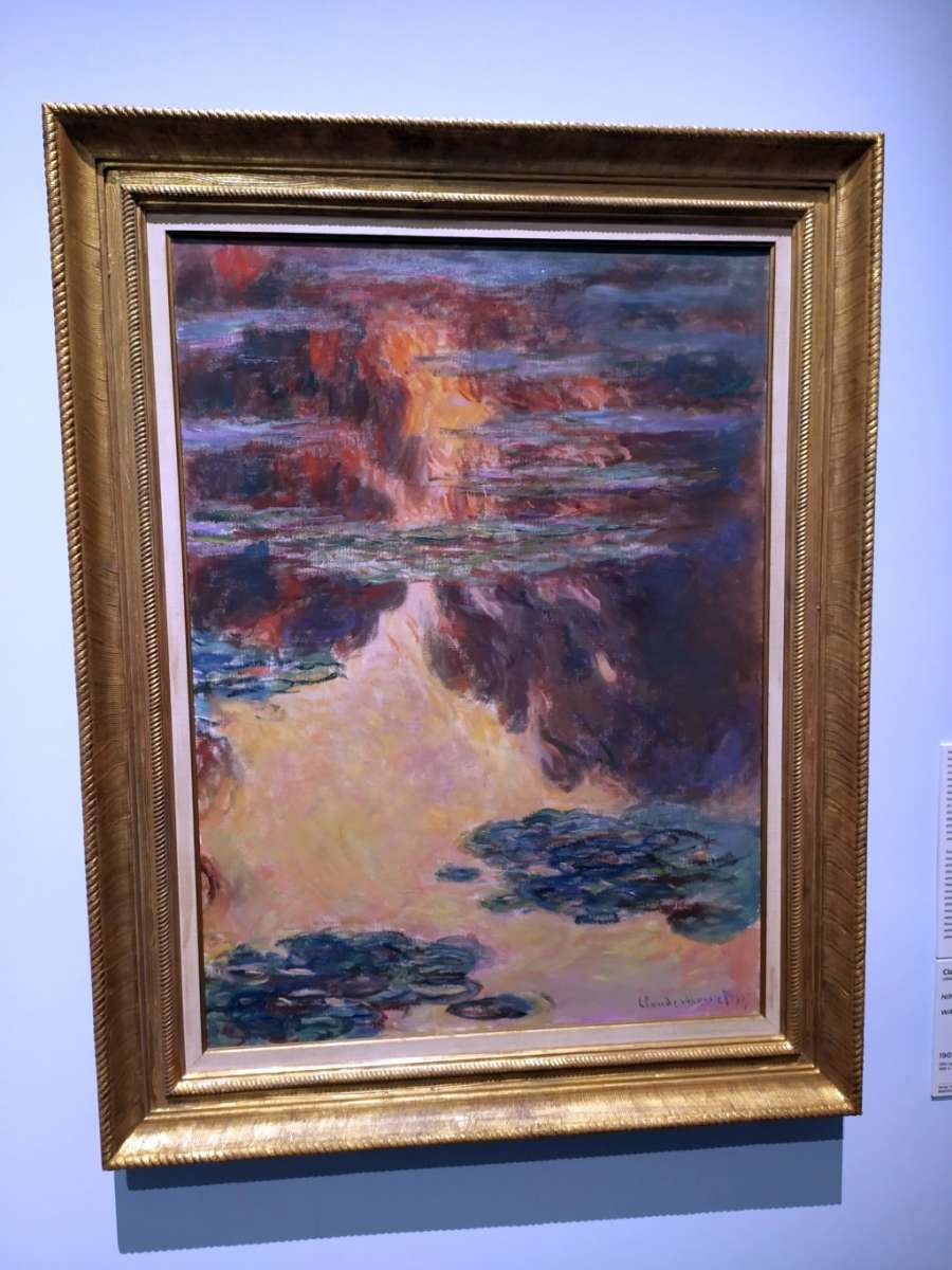 La mostra di Monet a Palazzo Reale è certamente una bella occasione per poter ammirare le sue opere qui in Italia, senza dover andare per forza a Parigi. In particolare ho apprezzato le opere più tarde, degli anni ’20: macchie di colore, pennellate dense, forme sfatte e dissolte, la tela che rimane visibile, non finita ai bordi, quasi pittura astratta. In un concetto di potrebbe parlare di “opacità del medium”. E tutto questo è sicuramente modernissimo, alle radici dell’arte contemporanea del Novecento.