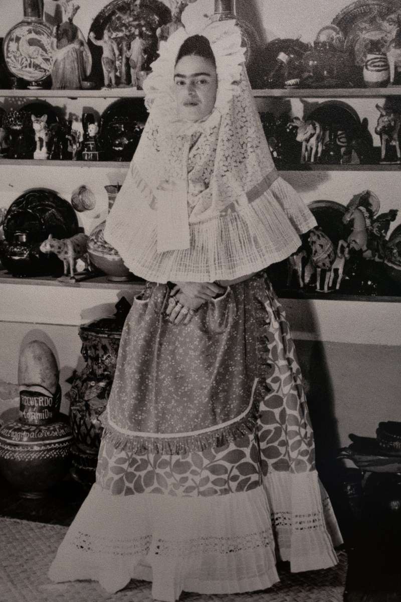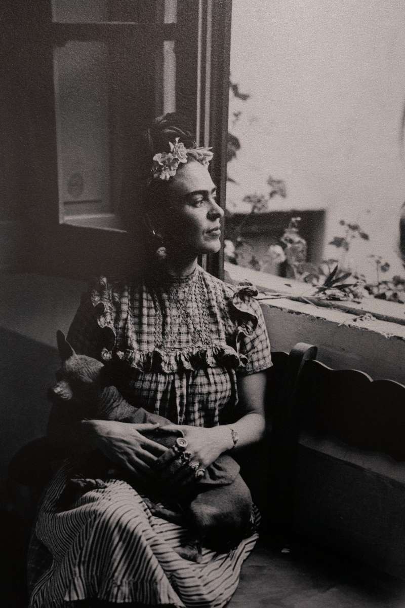È la Frida al di là del suo essere artista quella che viene raffigurata in mostra, una Frida raccontata dalle sue foto più iconiche a quelle più personali ed è con questo scorrere di scatti in bianco e nero che si ripercorre la sua vita.