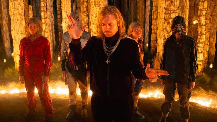 Il contraltare oscuro di Kelson è Sir Lord Jimmy Crystal, interpretato da Jack O’Connell. Leader carismatico e profondamente disturbante di una gang di non infetti, Jimmy ha costruito un sistema di potere basato sulla violenza, sul culto della personalità e su una mitologia grottesca che richiama icone televisive del passato. Il personaggio è inquietante, imprevedibile e magnetico, capace di rubare ogni scena in cui compare.
